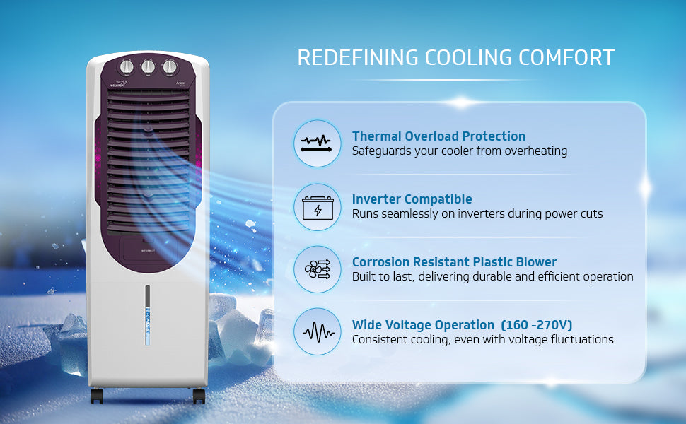 Many of us are at a constant battle with the summer heat. The hot weather can make you feel tired and frustrated. That is why you need the V-Guard ARIDO T25H tower air coolers for home. V-Guard ARIDO T25H tower air cooler is your best summer pal that can help you to get through the hot weather easy-breezy: Combination of Thicker and long-lasting HONEYCOMB anti-fungal pads and UNIDRIP FLOW water distribution provides superior and long-lasting cooling. This way you get to enjoy cool air for ...