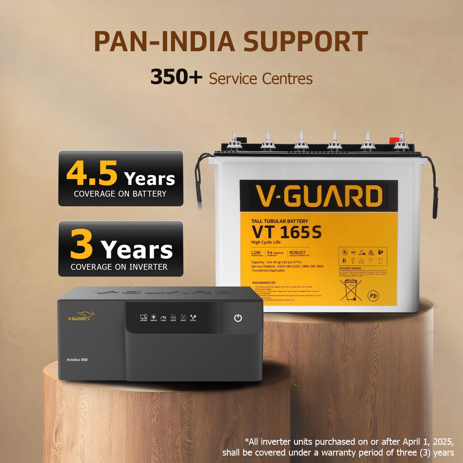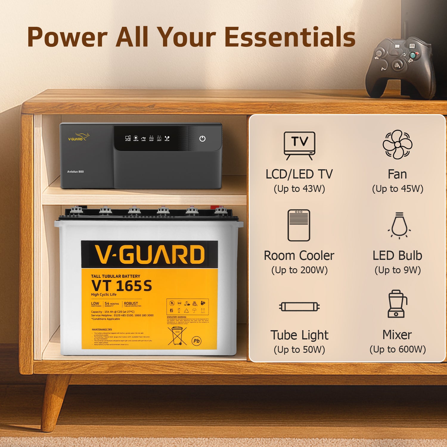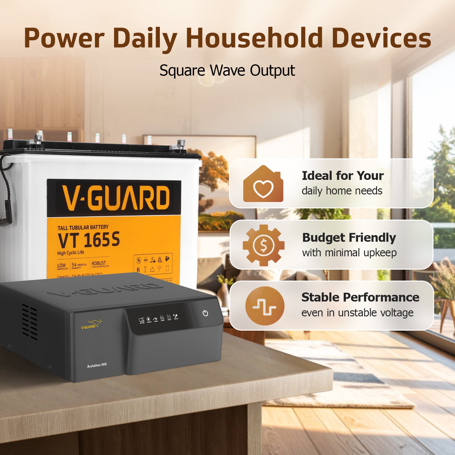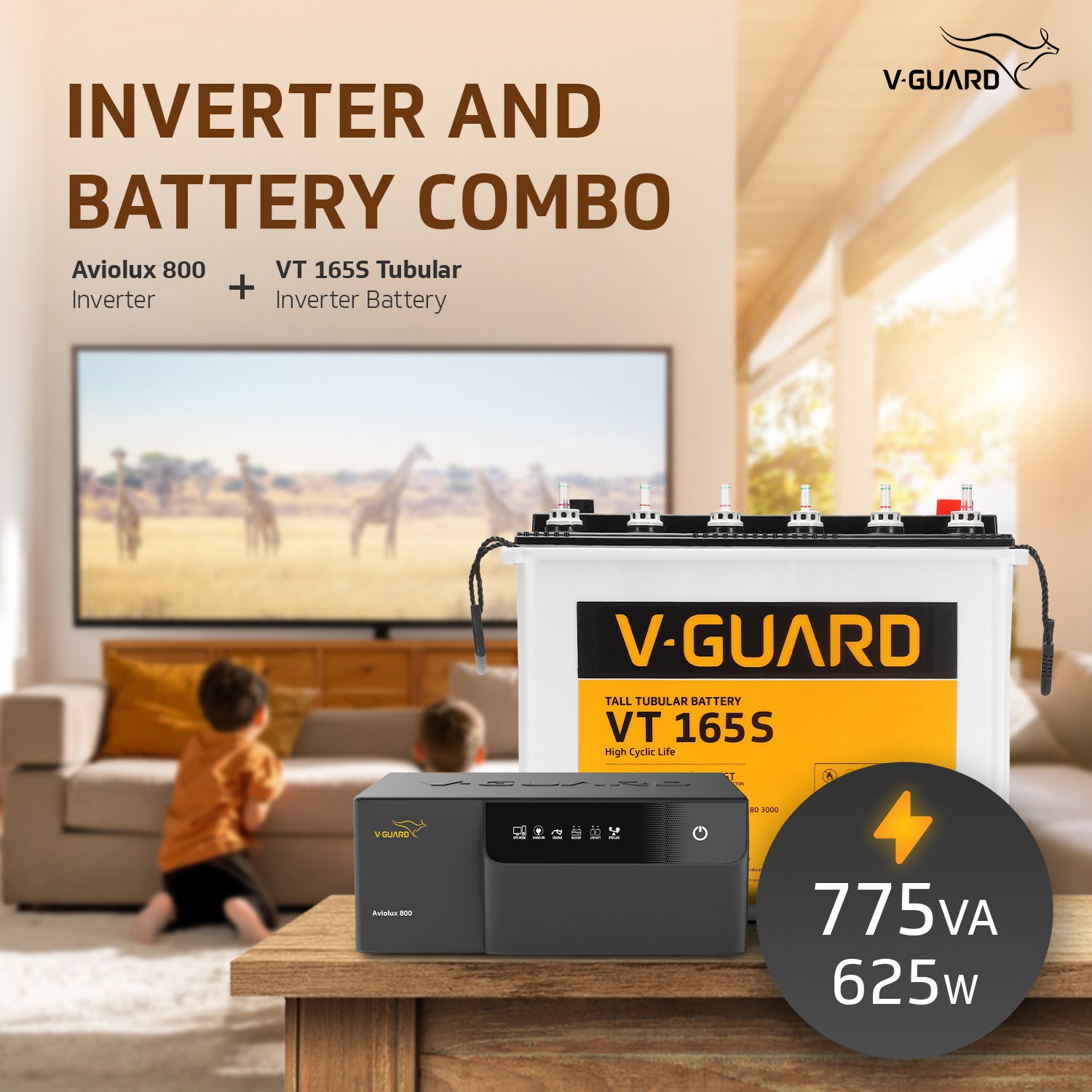 Aviolux 800 Inverter and VT 165 Eco Battery Combo for Home, Office & Shops