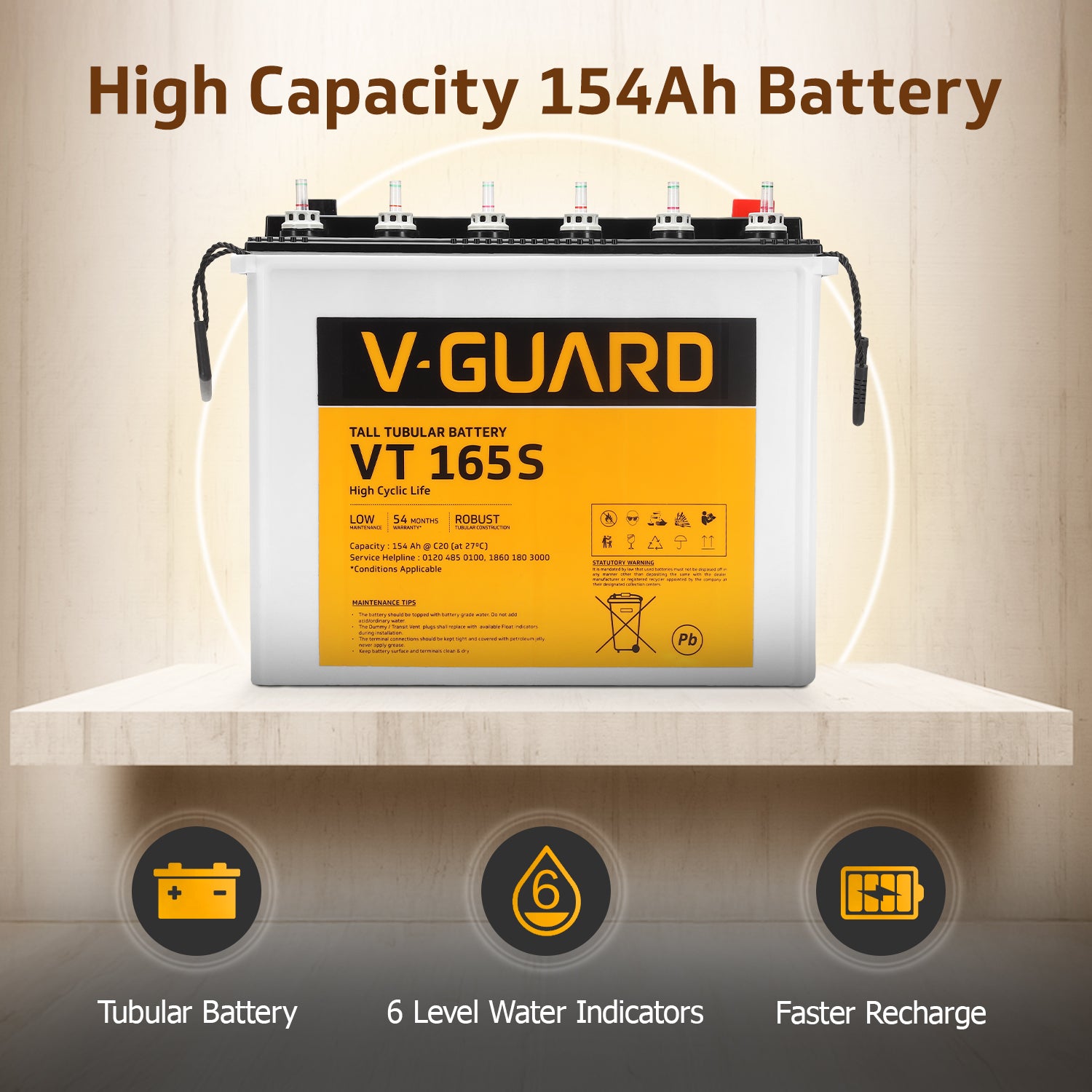 The V-Guard Aviolux 800 Inverter and VT 165 Eco Battery combo offers reliable and efficient power backup for your home. Equipped with advanced DSC-based Pulse Width Modulation (PWM) technology, the inverter ensures stable performance and protects your appliances from voltage fluctuations. With a maximum load capacity of 625W, it efficiently powers devices like fans, LED TVs (up to 40”), and room coolers (up to 200W). Paired with the VT 165 Eco Battery, which offers a robust 152Ah@C20 capac...