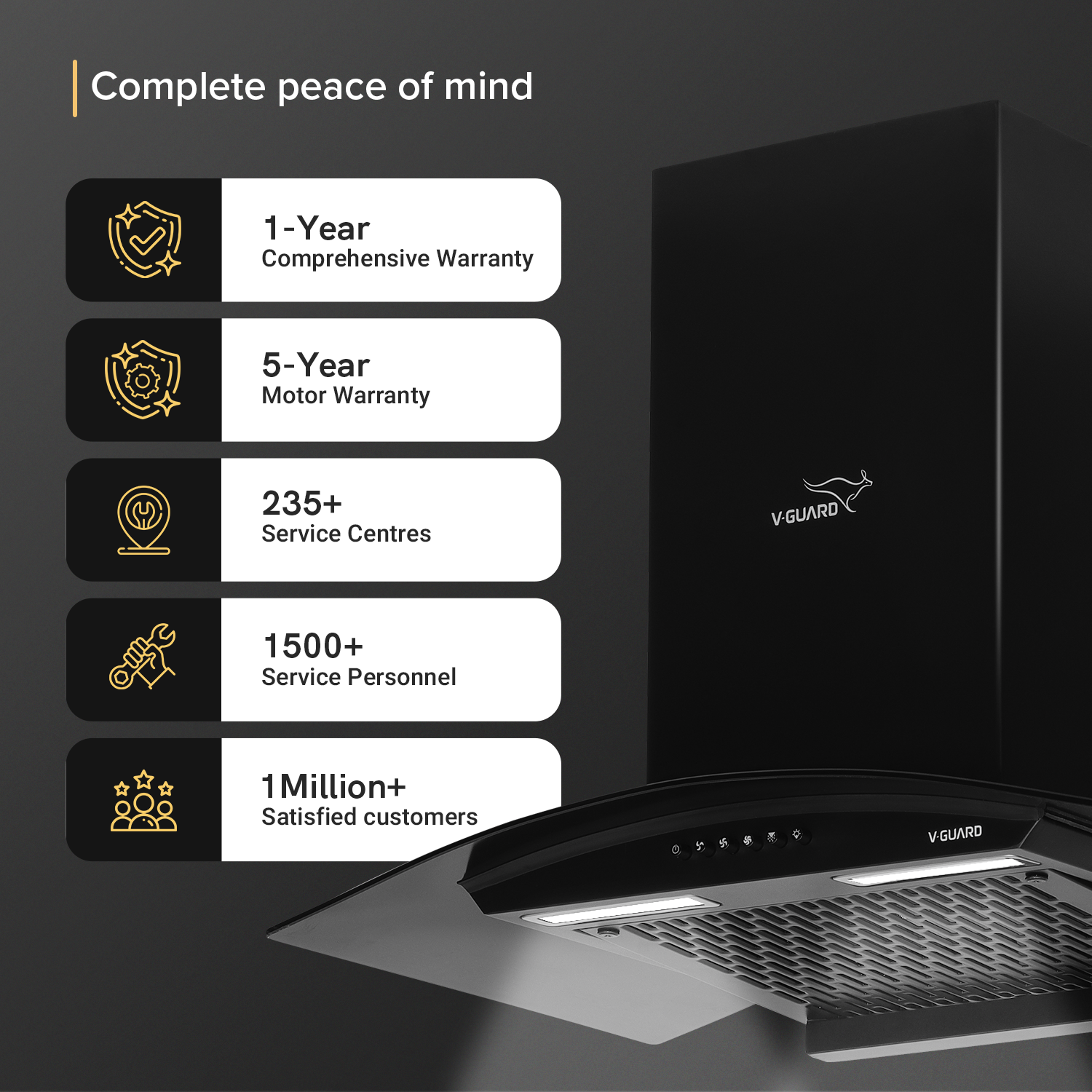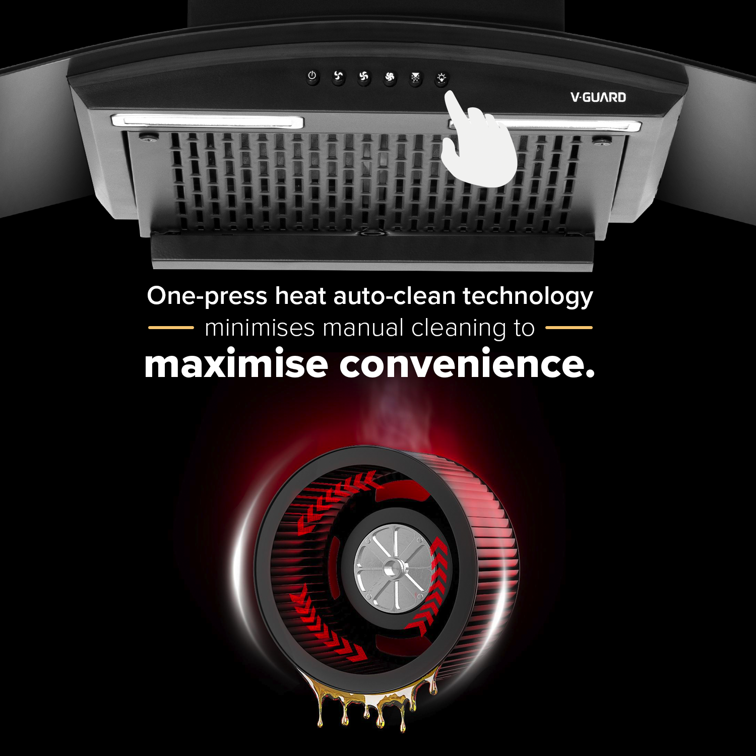 Newly launched V-Guard Kitchen Chimney C10 with Filterless Design and Auto Clean technology designed specifically for Indian Kitchens. Comes with 900 CMH Suction Capacity and a timer function.