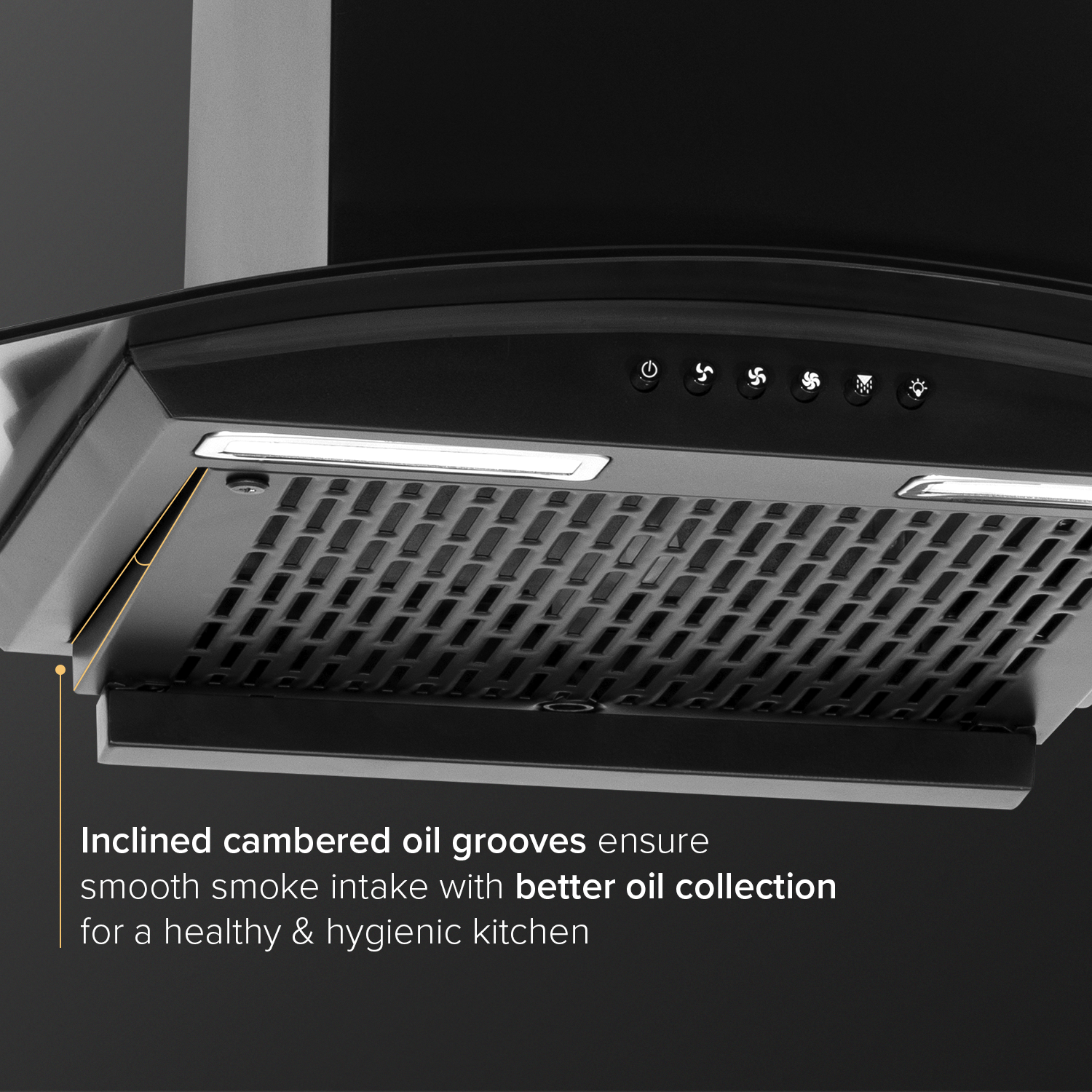 C10 60cm Kitchen Chimney with 900 m³/hr Suction | Filterless | Intelligent Auto Clean | Elegant Curved Glass Design |