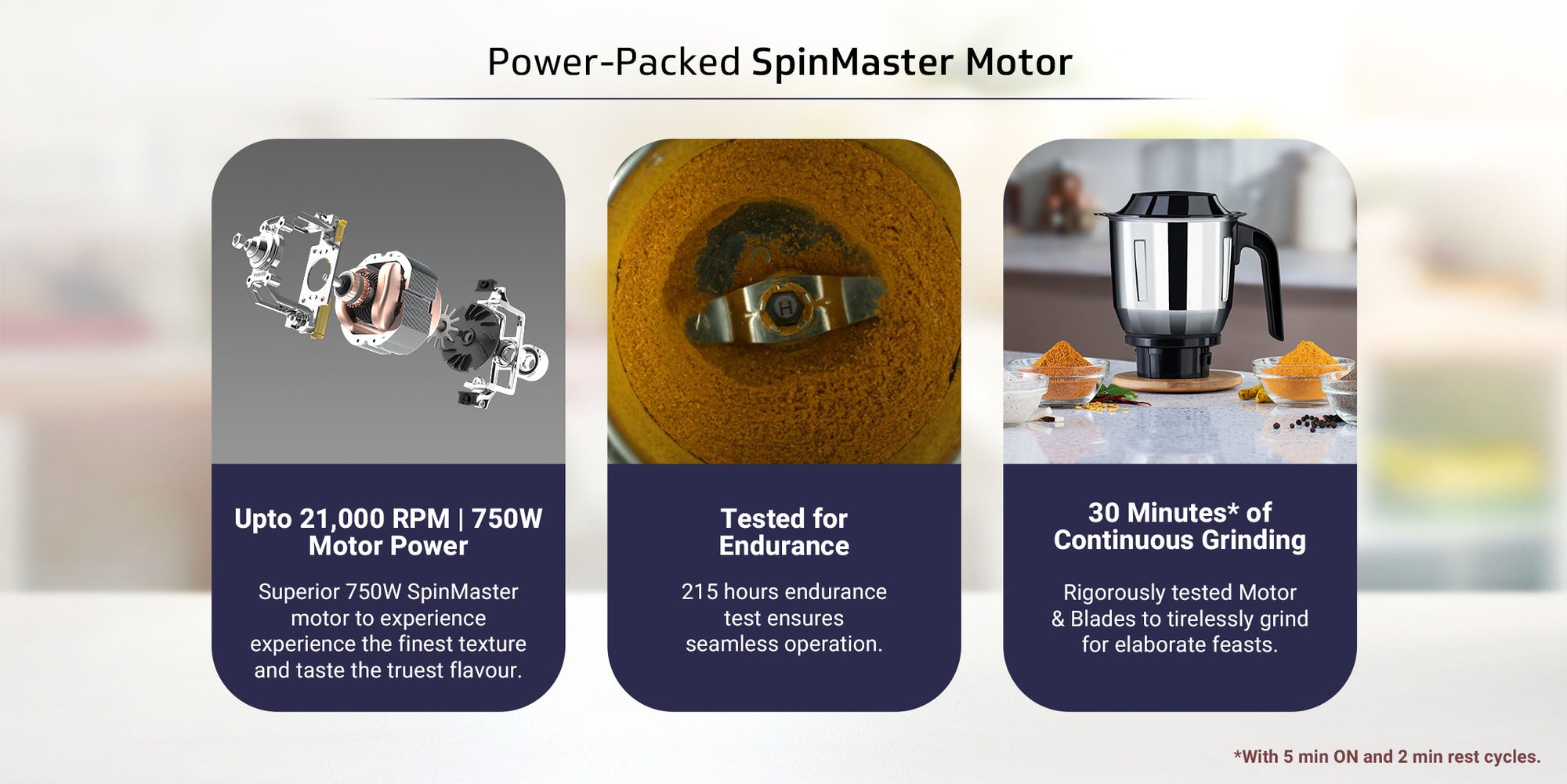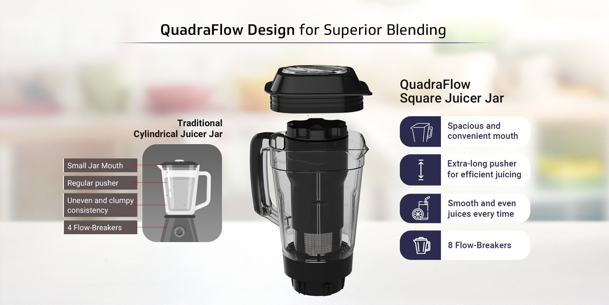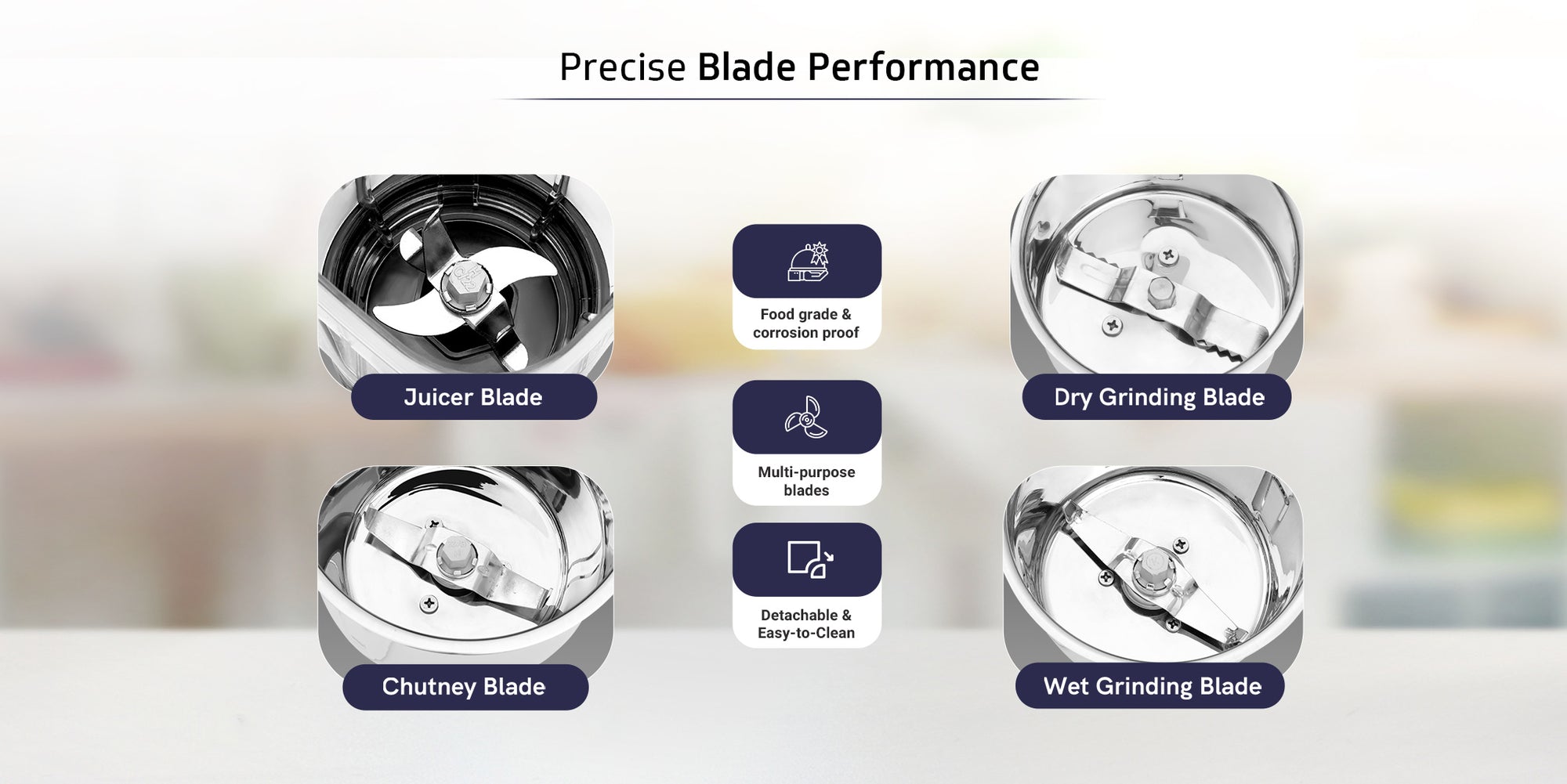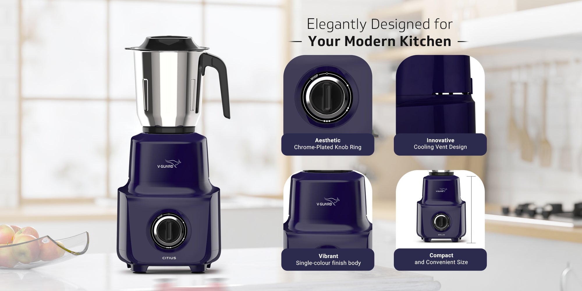 Citius 750 Watt Juicer Mixer Grinder, 3 Year Motor Warranty, 4 Jars(Chutney, Dry, Wet & Juicer), Sturdy Juicer Jar with QuadraFlow Design (Blue)