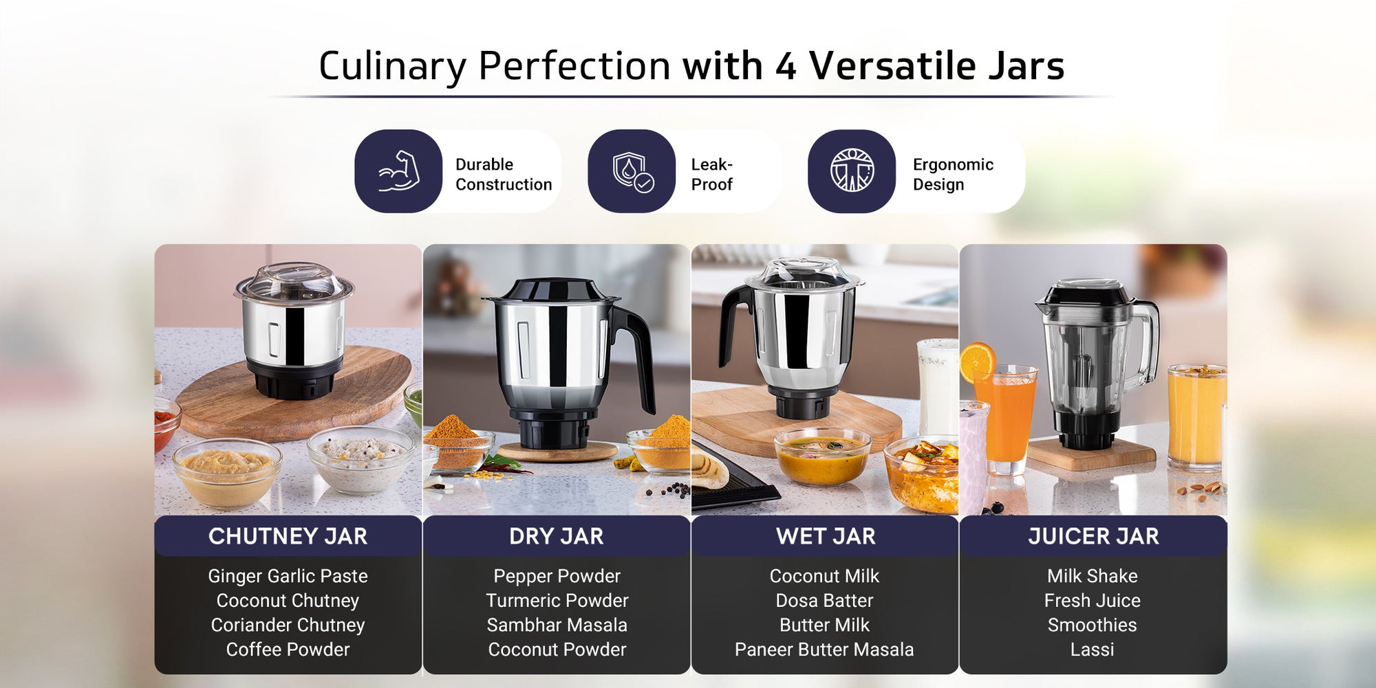 1 Number Each of Mixer Unit, Wet jar, Dry Jar, Chutney Jar, Usermanual cum Warranty Card.