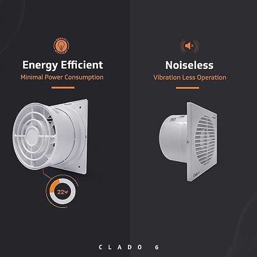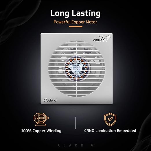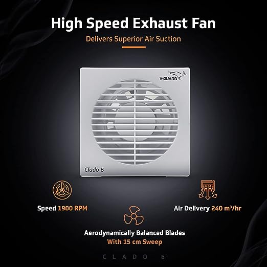 Elegantly designed in alluring white color, V-Guard Clado 6 packs in a powerful performance to help you eliminate smoke, fumes, unwanted gasses and odours from your home. Featuring 9 ABS plastic blades 15cm in width and a powerful copper motor, Clado 6 delivers a high speed of 1900 RPM while consuming just 22W of power, allowing you to use it for prolonged periods without worrying. Ideal for mounting on walls as well as windows, this beautiful product does not disturb your peace as it oper...