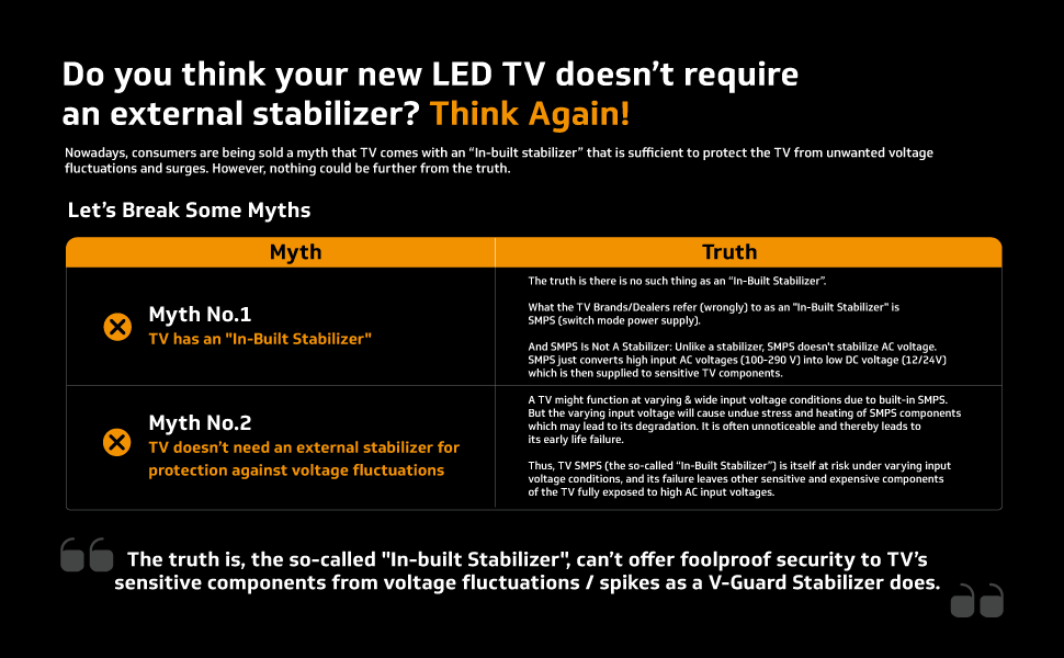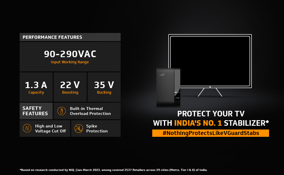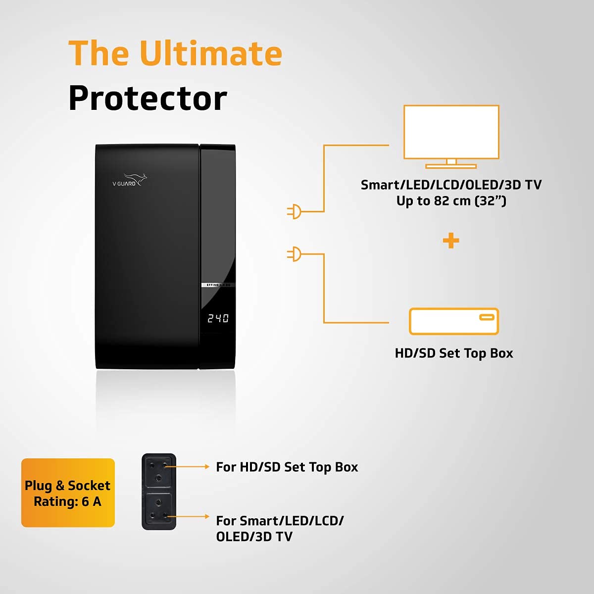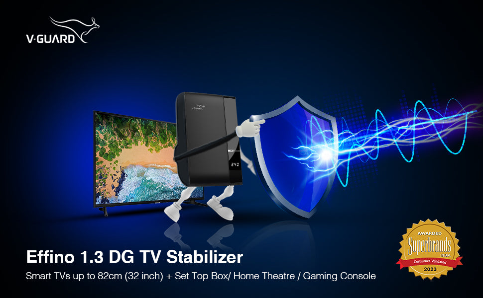 V-Guard Effino 1.3 DG TV stabilizer provides complete protection to your television sets from voltage fluctuations, allowing you a smooth and seamless viewing experience. Designed to protect Smart TVs up to 82 cm (32), it can additionally support your set-top box.