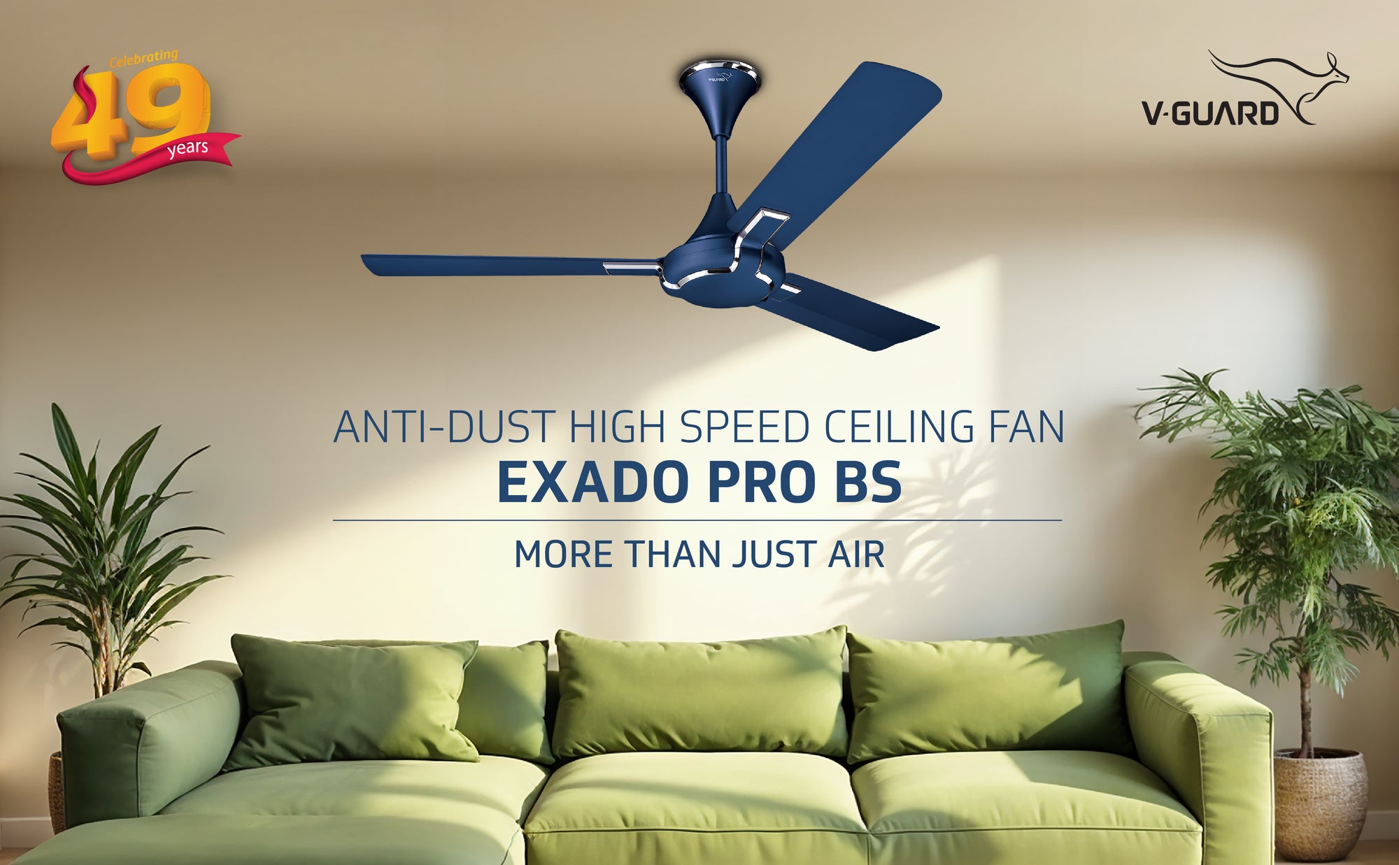 Enjoy all the advantages of a high-speed ceiling fan that also matches any stunning showpiece in your interior spaces, with V-Guard Exado Pro BS Anti Dust Designer Ceiling Fans for Home. Exado Pro BS Anti Dust ceiling fans are handsomely crafted with superior quality material to bring you a high level of efficiency. It comes with a warranty of 30 months and promises consistent long-lasting performance. With energy efficiency at its core, Exado Pro BS (BEE 1 Star Rating) can save up to Rs.3...