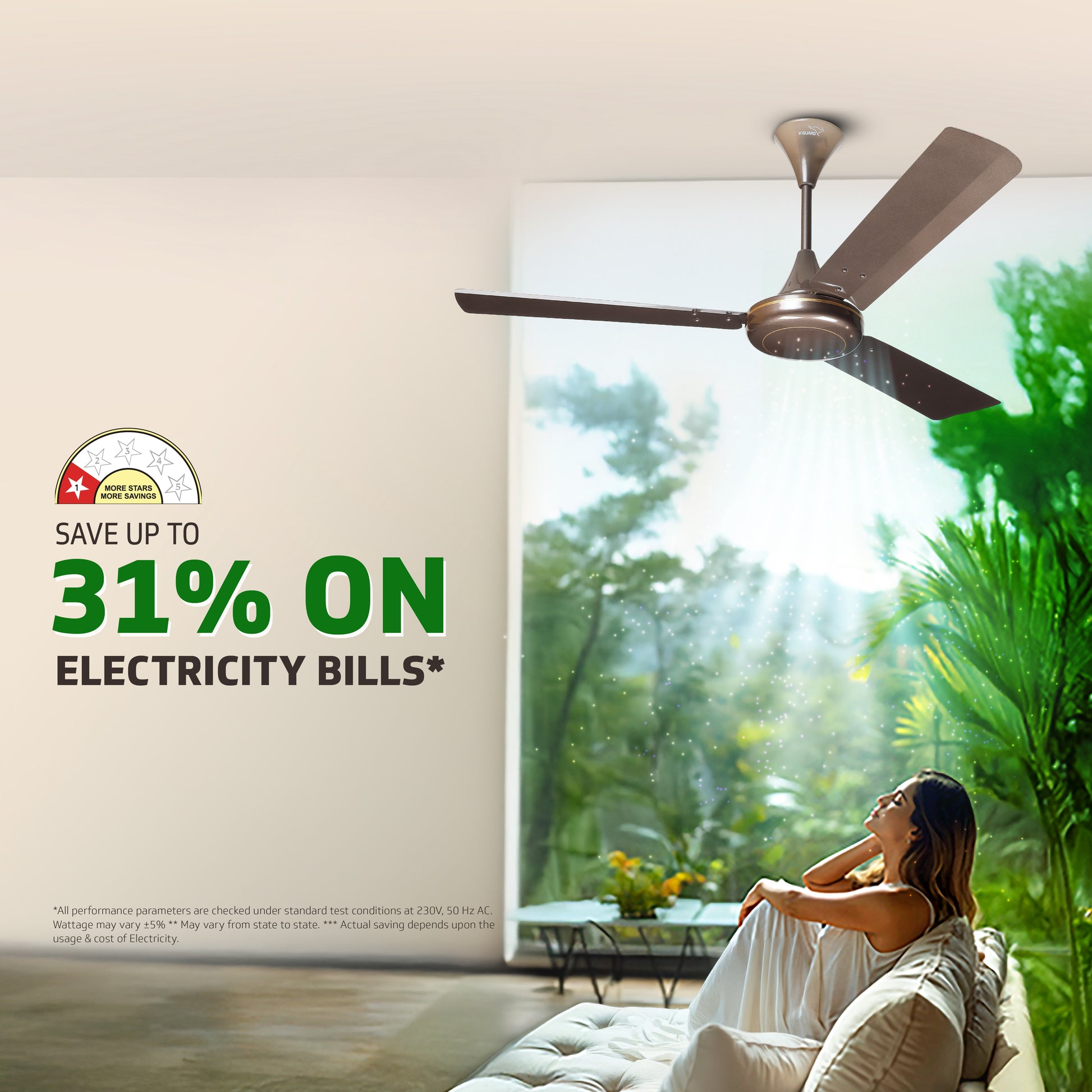 Enjoy all the advantages of a high-speed ceiling fan that also matches any stunning showpiece in your interior spaces, with V-Guard Gatimaan Pro AS High-Speed Ceiling Fans for Home. V-Guard Gatimaan Pro AS high-speed model is one of the finest products for the speed-loving contemporary customer who values great comfort. With energy efficiency at its core, Gatimaan Pro AS (BEE 1 Star Rating) can save up to Rs.3796 annually on 4 fans when compared to an 80 W conventional fan. Its specially d...