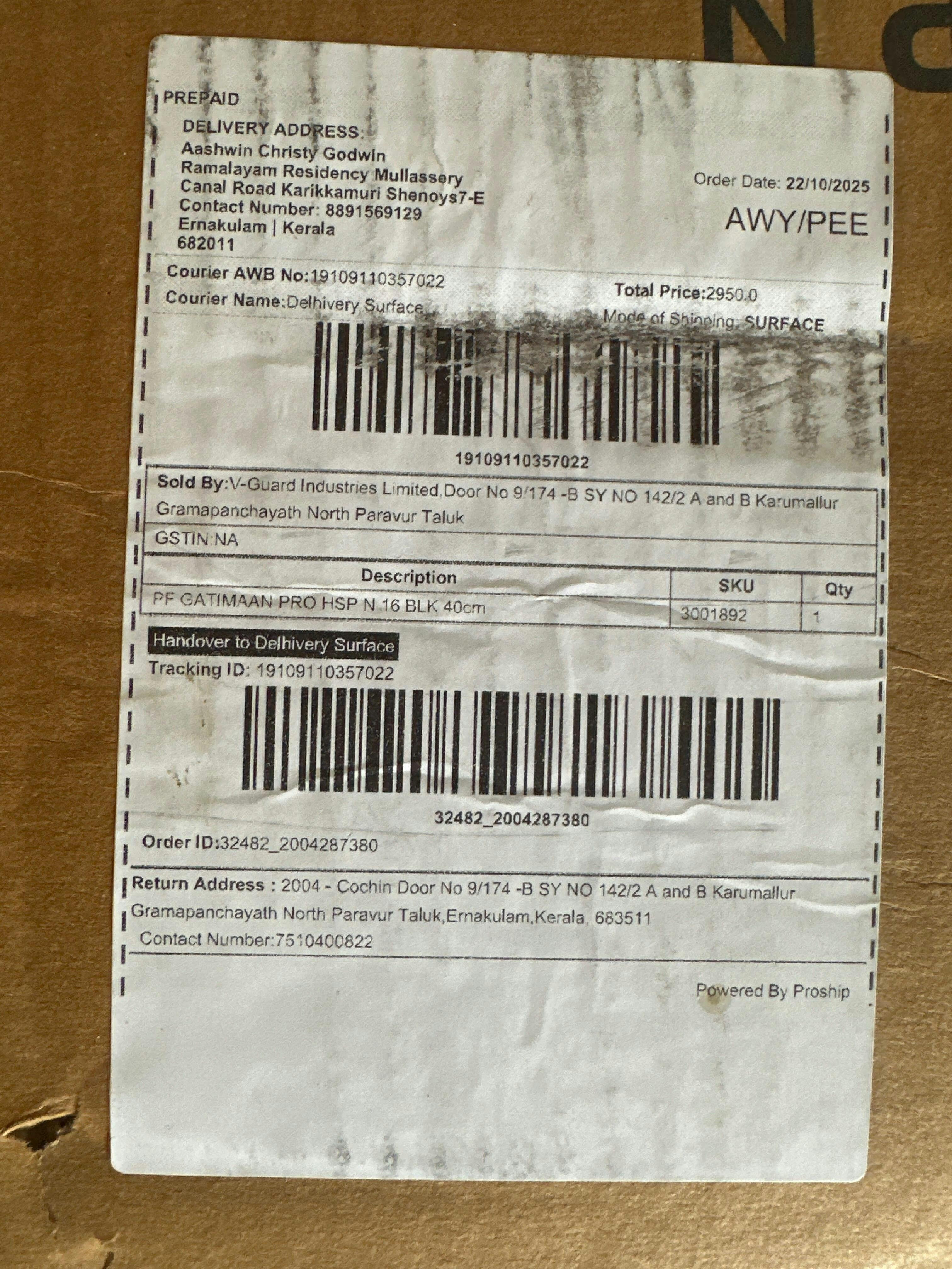 V-Guard Industries Ltd. 42/962, Vennala High School Road, Vennala, Kochi- 682028, Kerala,