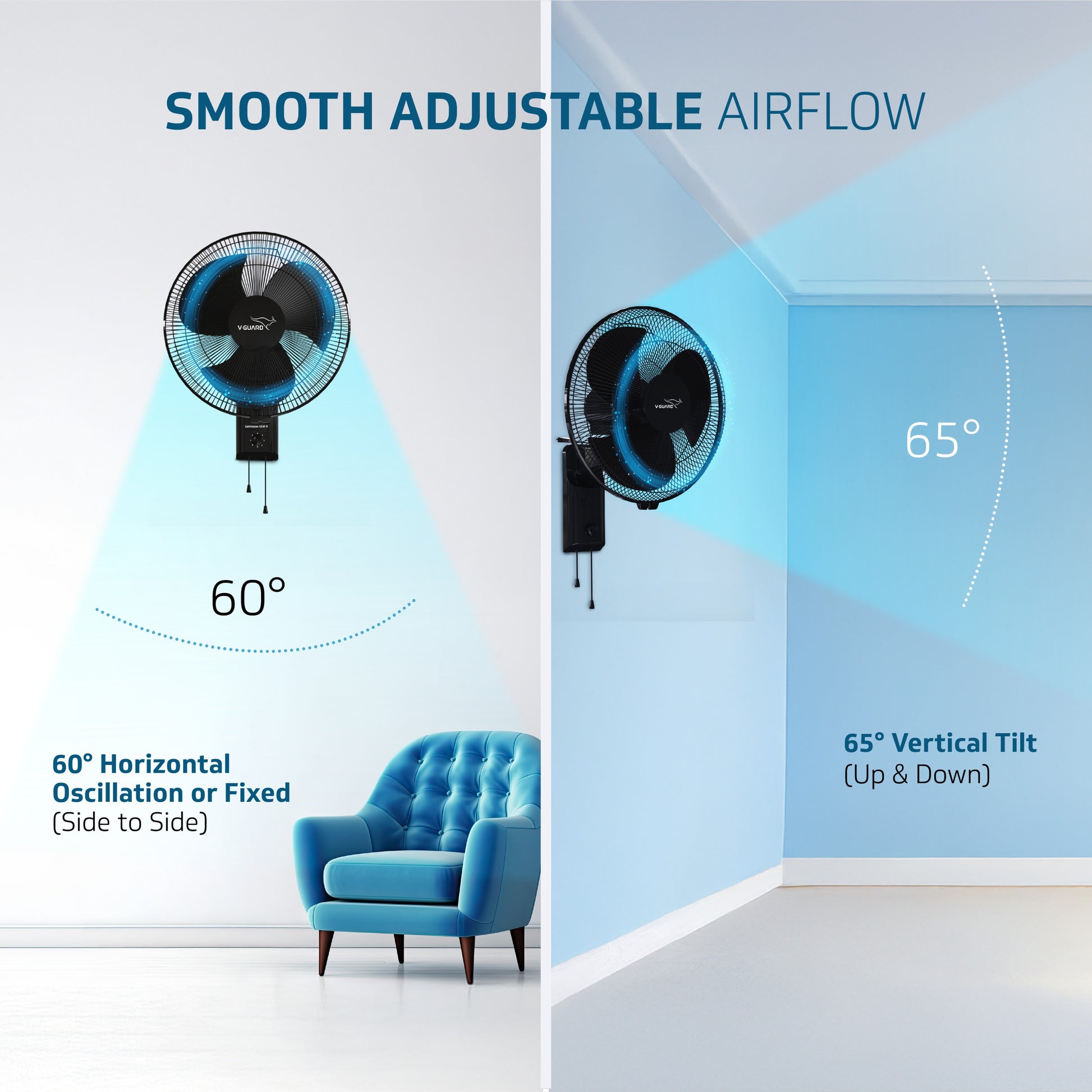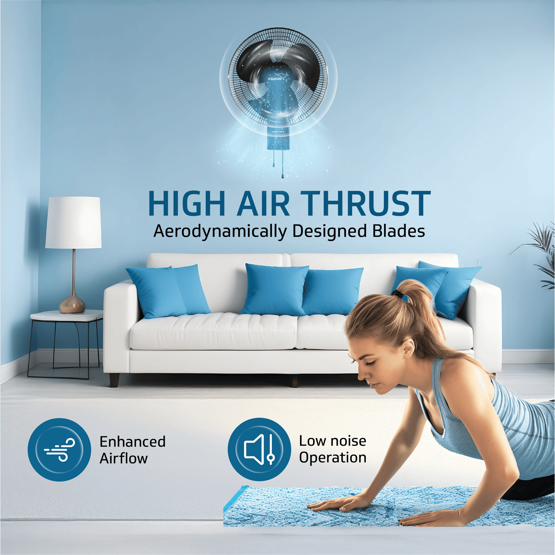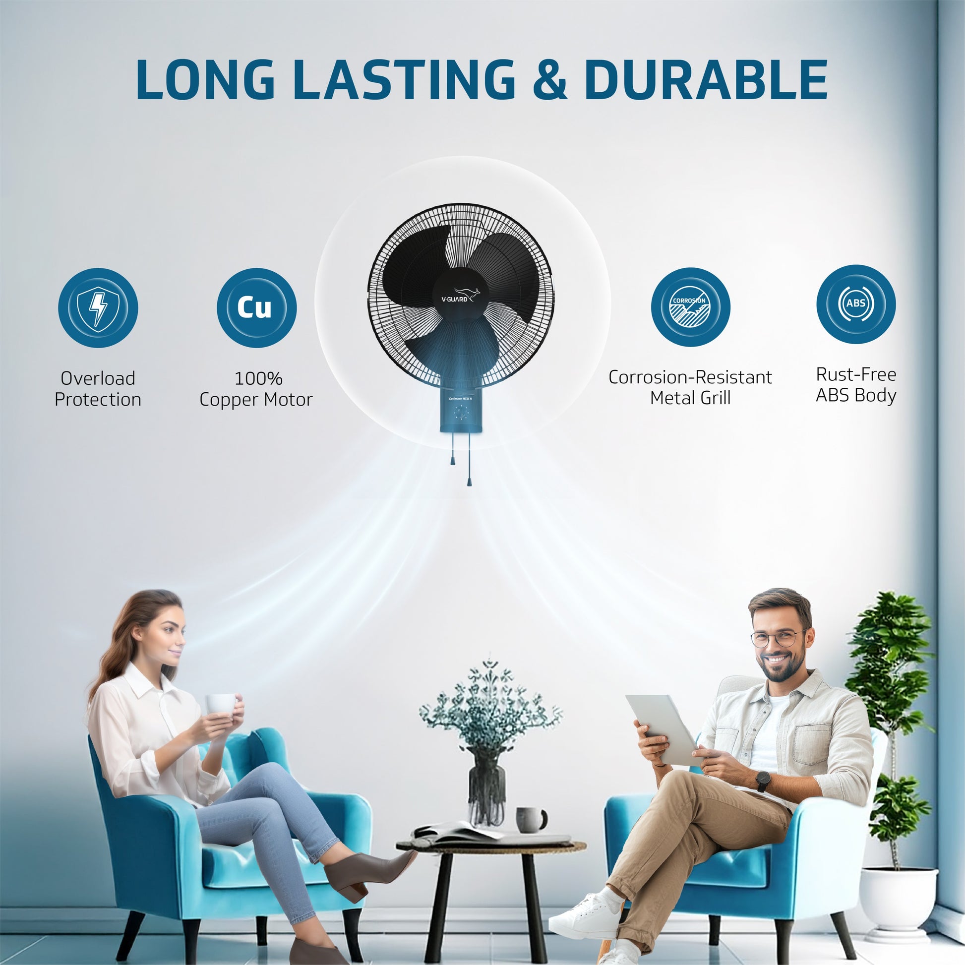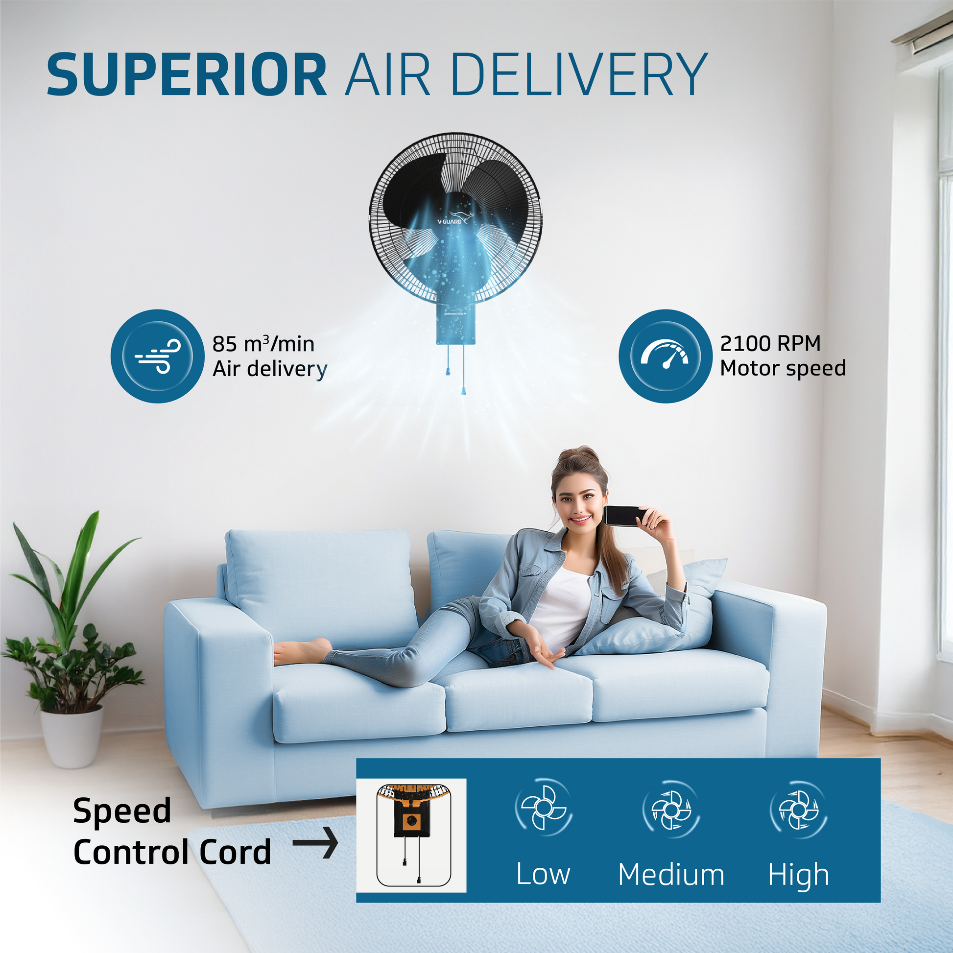 Meet the V-Guard Gatimaan Pro HSW N wall fan, where power meets convenience in a perfect blend of performance and ease of use. This wall fan for bedroom offers exceptional cooling. With 3 wind modes, ON-OFF buttons, and 7.5-hour timer control, adjusting the fan speed and creating the ideal cooling experience is effortless. The V-Guard Gatimaan Pro HSW N wall mount fan for the bedroom has a robust 2100 RPM motor generating a high-speed airflow of 85 m³/min. Its impressive 40 cm (400 mm) swe...
