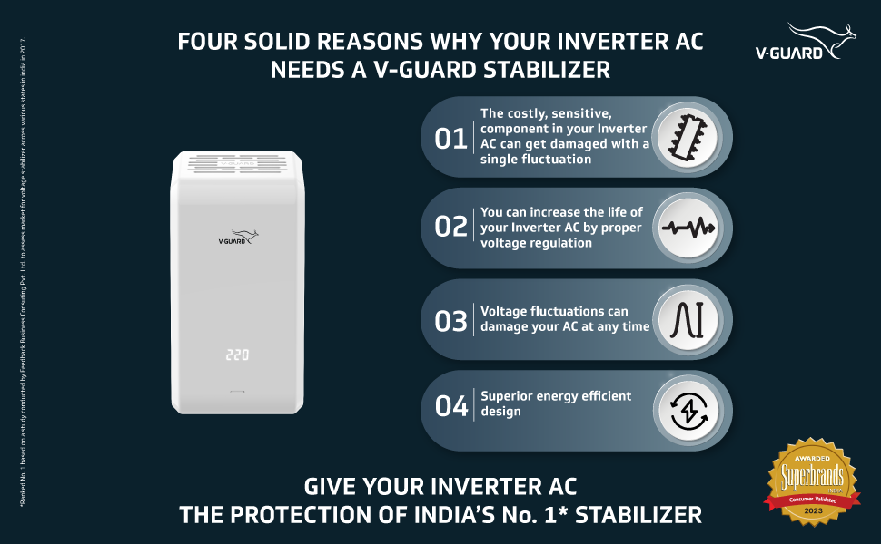 Protect your AC and enjoy complete peace of mind with V-Guard AC Stabilizer Series. Equipped with class-leading features, V-Guard Stabilizers are designed to complement the interior of your house, making it smart in design & savvy in safety. V-Guard iMagno NX 410 Stabilizer for 1.5 ton Inverter AC is the perfect solution for protecting your inverter AC from voltage fluctuations with its wide working range of 170 VAC - 270 VAC, m...