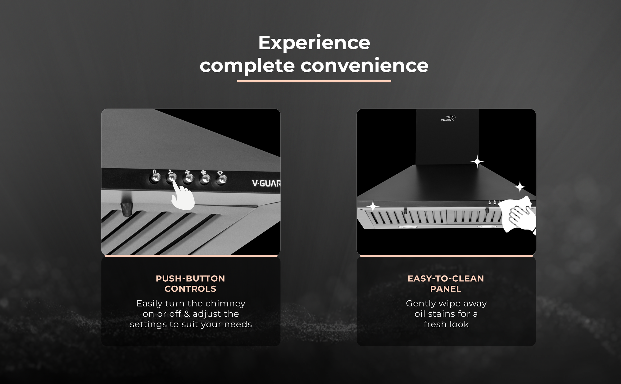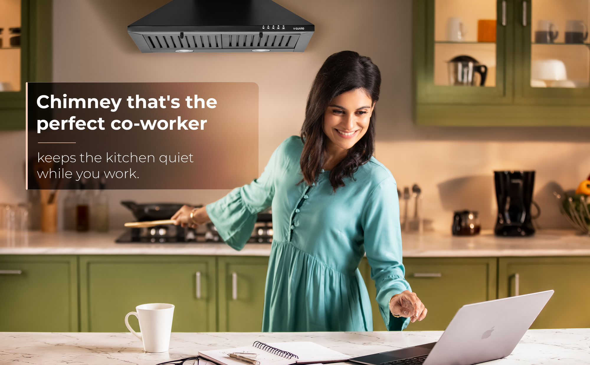 Modern packed kitchens can often get heated, and smoke filled when cooking, grilling, and frying. The compact and stylish V-Guard's latest M10 Pro chimney is the perfect solution for space crunched environments, safely removing smoke and fumes from your kitchen. Elegantly styled with a shiny black finish, it enhances your kitchen decor as well. With limited working space, you often refrain from multitasking like grilling, frying and sautéing as smoke can be quite hazardous. Validate...