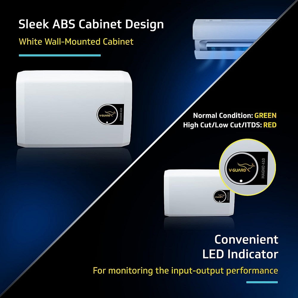 Delivering highly regulated output voltage, the V-Guard Magno 410 AC Stabilizer ensures the long life of your air conditioner by stabilizing any undesirable fluctuations in the input voltage. Designed to protect an AC up to 1.5 tons, Magno 410 comes in an elegantly designed white ABS cabinet with wall mounting facilities and a user-friendly LED status indicator. Even a small voltage fluctuation may harm the sensitive components of your air conditioner. With a wide working range of 170-270 ...