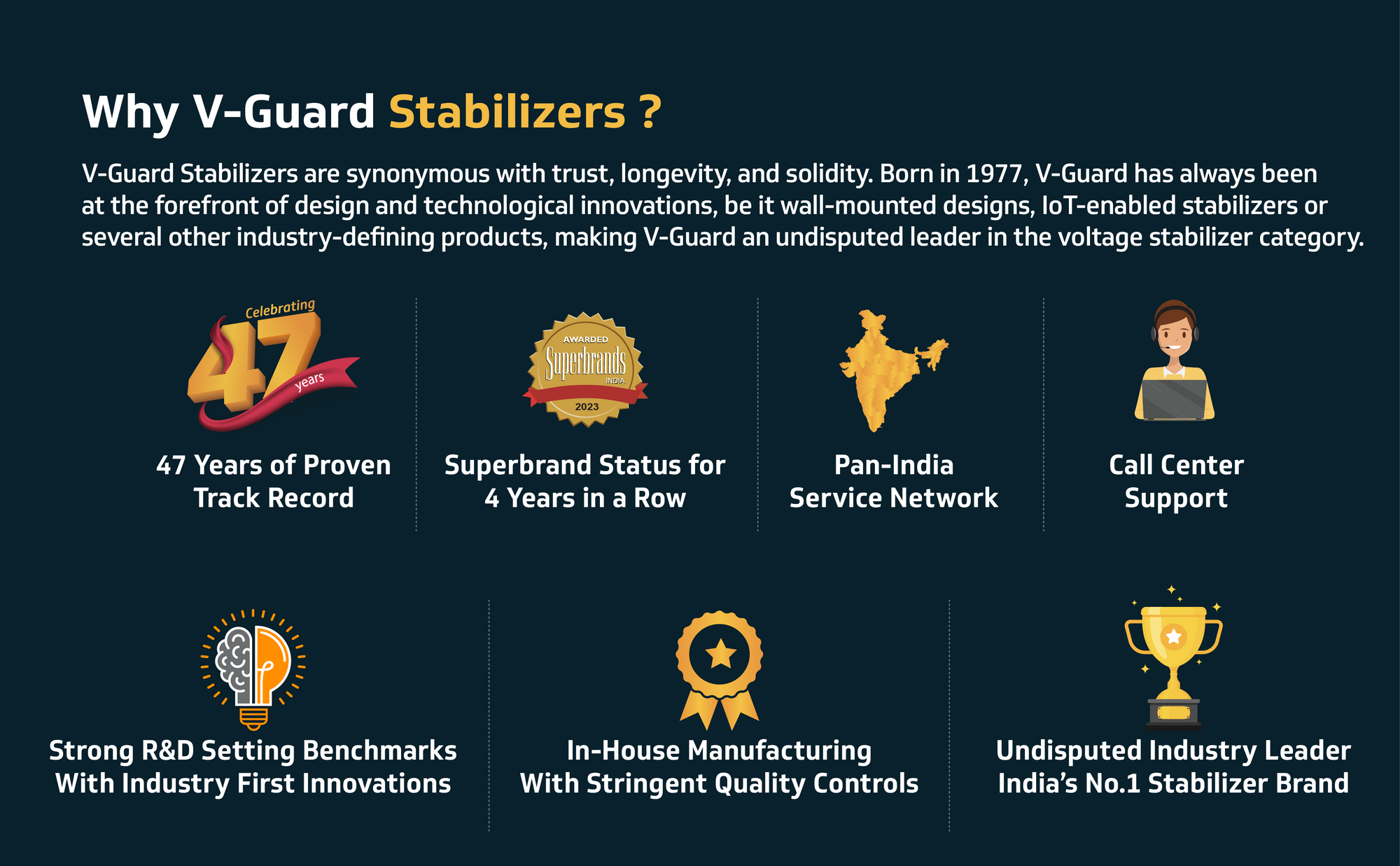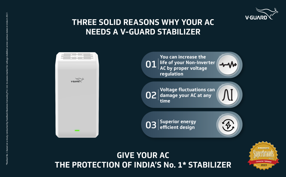 Protect your AC and enjoy complete peace of mind with V-Guard AC Stabilizer Series. Equipped with class-leading features, V-Guard Stabilizers are designed to complement the interior of your house, making it smart in design & savvy in safety. V-Guard Magno NX Stabilizer for 1.5 ton AC is the perfect solution for protecting your AC from voltage fluctuations. With its wide working range of 170 VAC - 270 ...