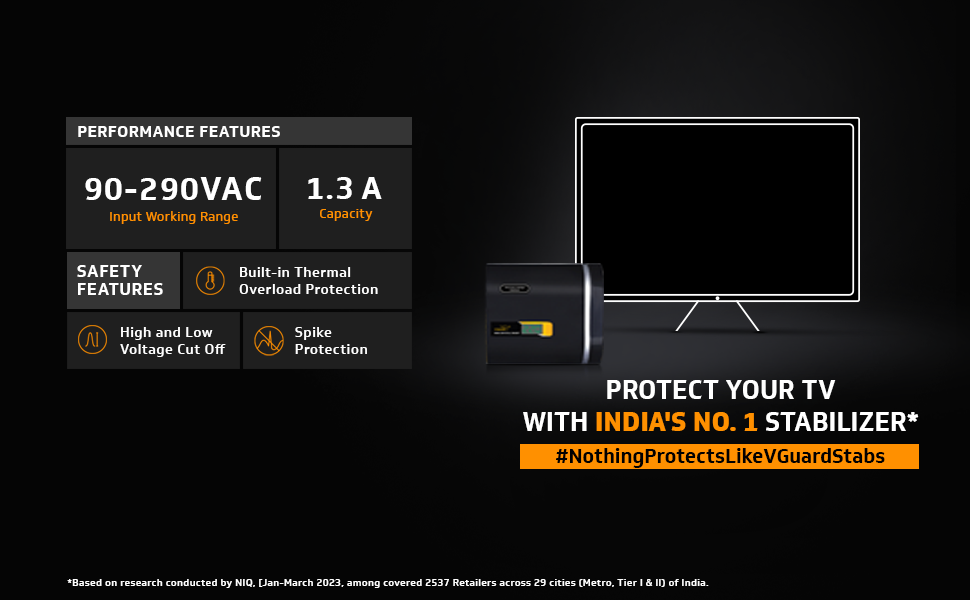 The V-Guard Mini Crystal Smart TV stabilizer provides complete protection to your television sets from voltage fluctuations, allowing you a smooth and seamless viewing experience. Designed to protect Smart TVs up to 82 cm (32), it can additionally support your set-top box as well.