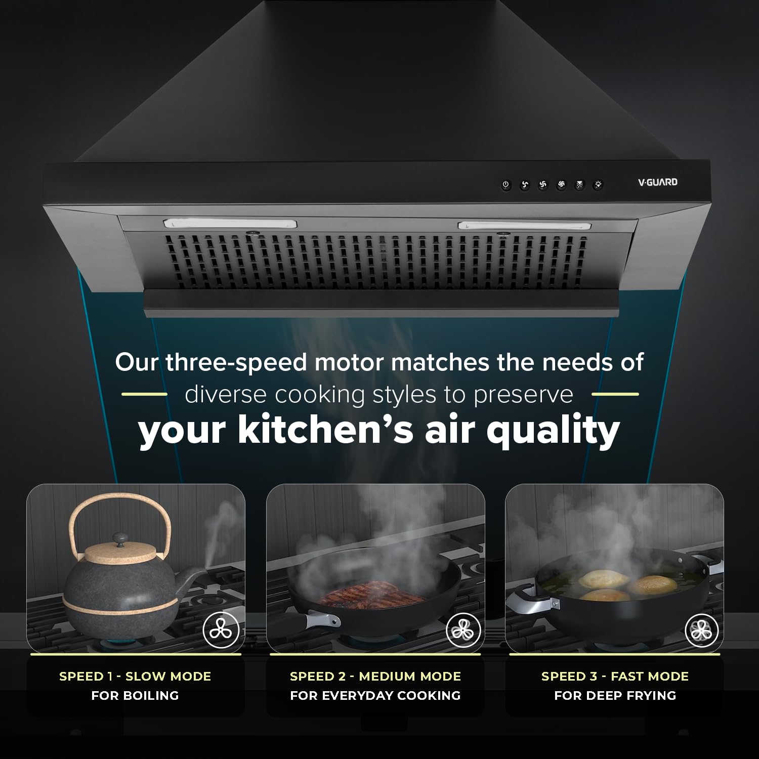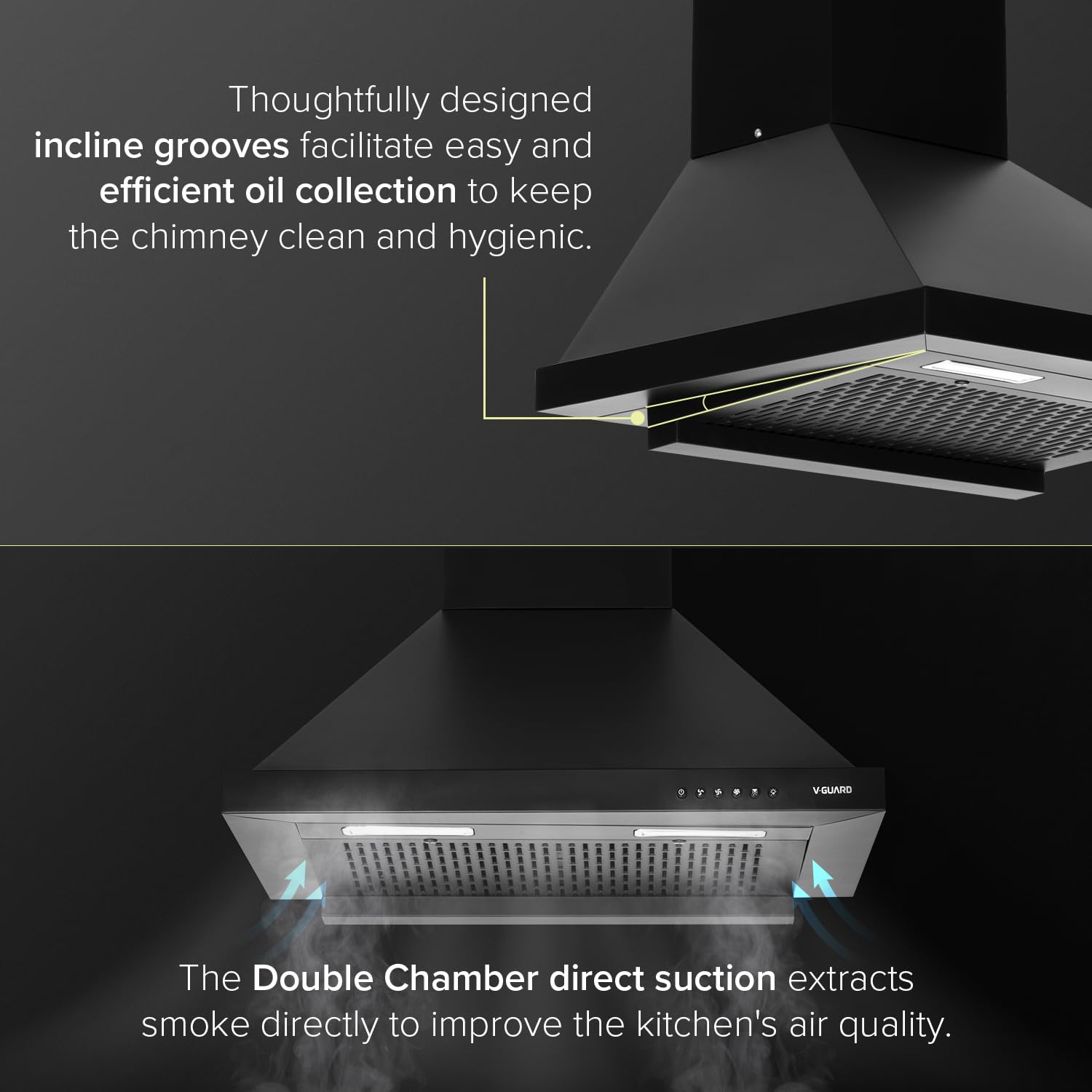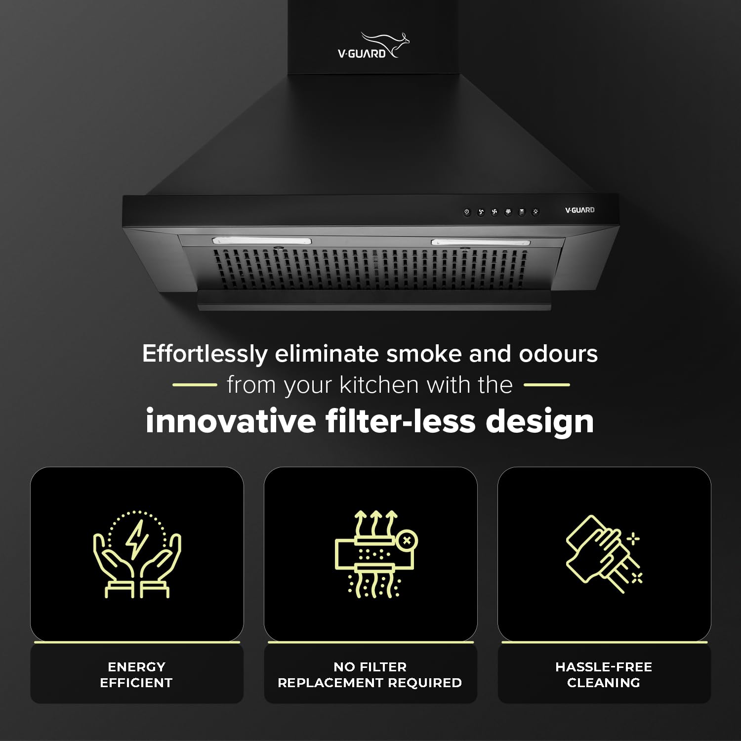 Introducing V-Guard P10 Chimney for Kitchen, a high-performance and user-friendly solution for clean and fresh indoor air! With a powerful suction of 1200 m3/h, this chimney efficiently removes smoke, fumes, and airborne particles from your kitchen or indoor spaces. The filter-less technology ensures higher suction efficiency without the hassle of cleaning filters, delivering consistent performance for extended periods. The smooth smoke exhaust system with an inclined cambered oil groove m...