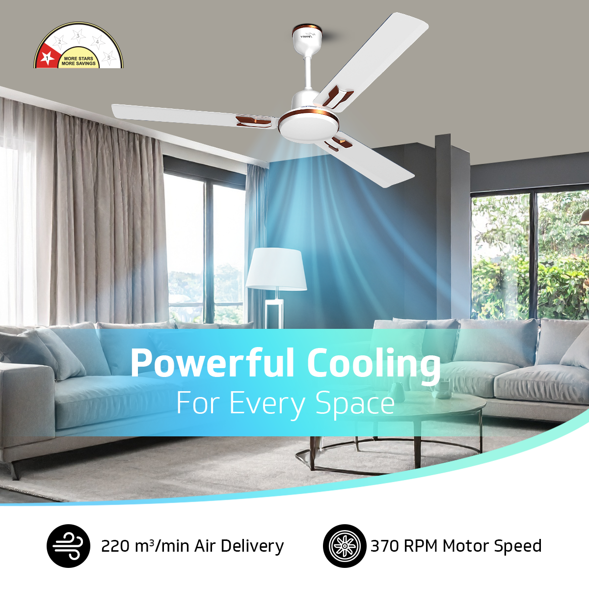 The V-Guard Paceart Ceiling Fan is a stylish and energy-efficient solution designed to enhance both comfort and decor. With a high performance motor delivering 370 RPM and an impressive air delivery of 220 m³/min, it ensures powerful and consistent cooling across the room. Crafted with special grade aluminum blades and a durable CRCA body, this fan offers long-...