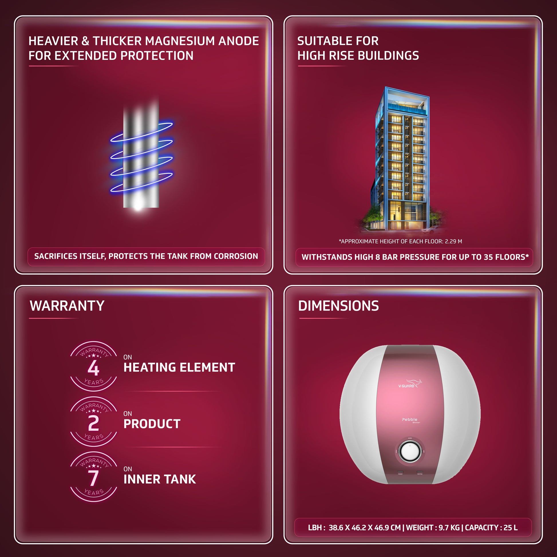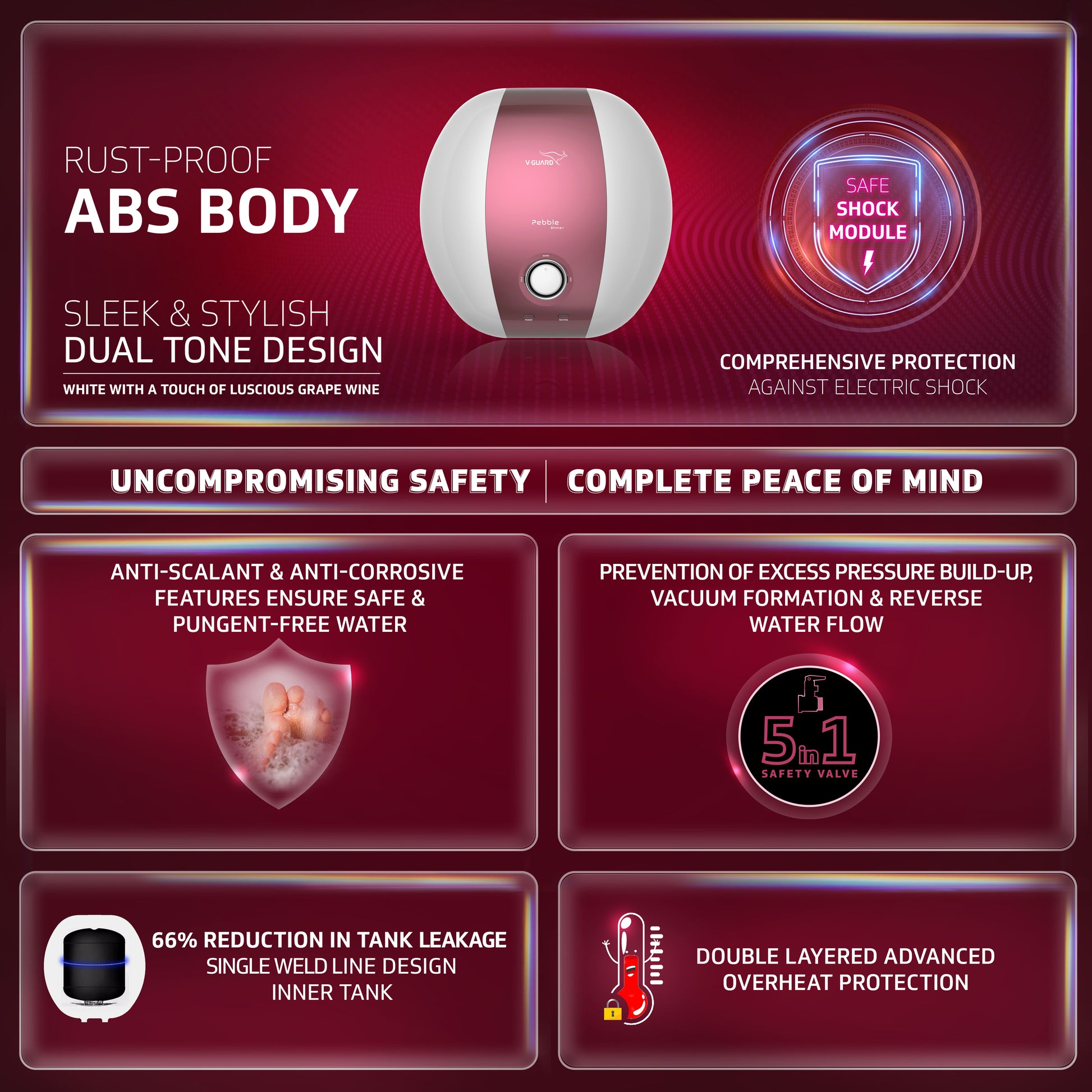 Pebble Shine Plus 25 L Water Heater with Rust Proof ABS Body and Safe Shock Module