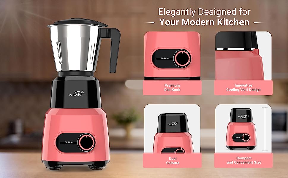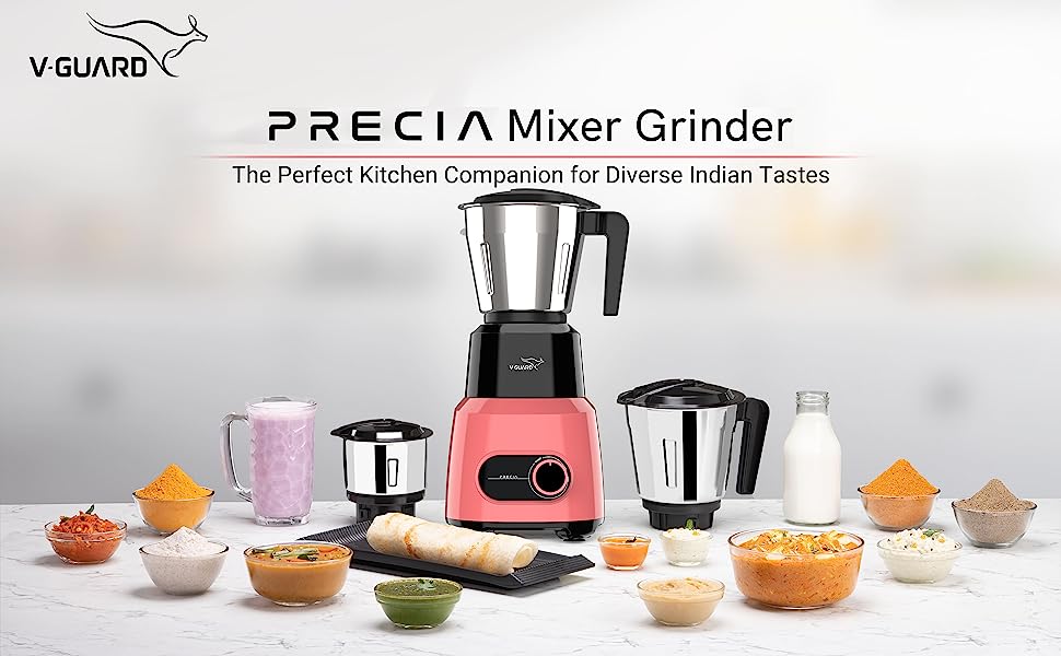 Introducing the V-Guard Precia Mixer Grinder - your perfect kitchen companion for your diverse Indian tastes! With a robust 500 watt motor that reaches an impressive speed of 20,000 RPM, this mixer grinder is designed to deliver exceptional performance for all your grinding needs. Built to withstand the rigour of a busy Indian kitchen, the V-Guard Precia Mixer Grinder features a powerful motor that undergoes rigorous endurance tests, including a 30 minute grinding test, to ensure it can ha...