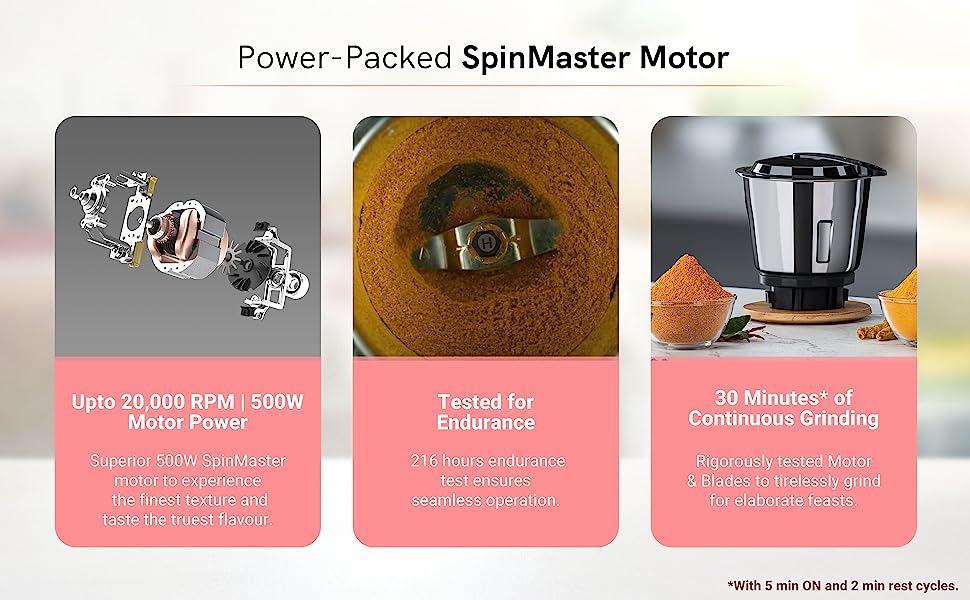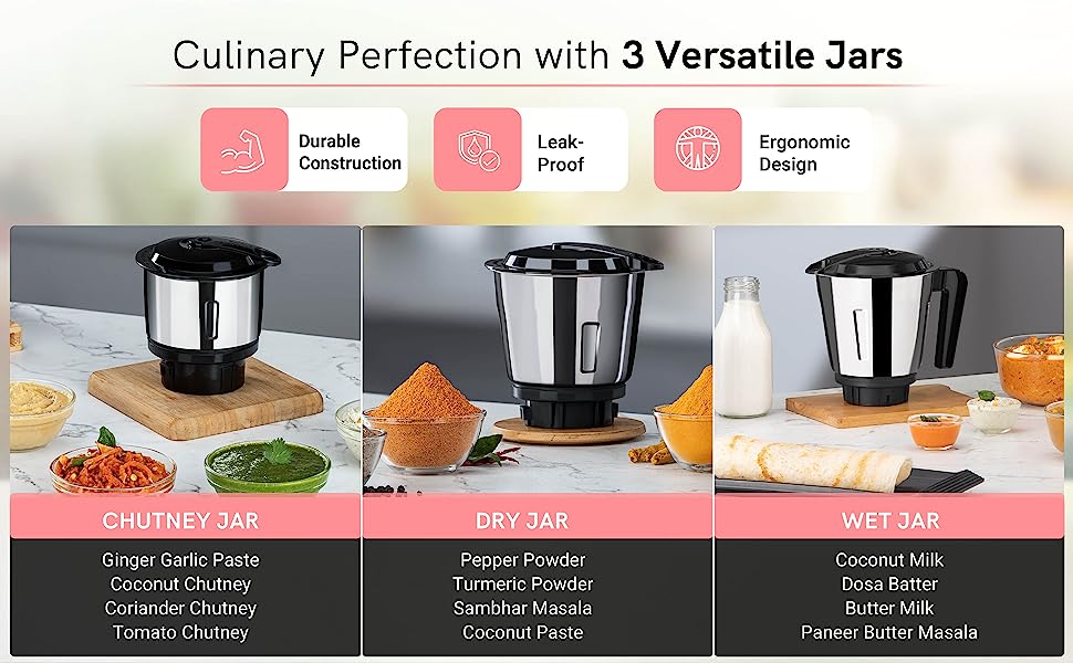 Precia Mixer Grinder 500 Watt/Newly Launched/Mixie for kitchen with Multifunctional SS Mixer Jars (Chutney, Dry, & Wet Jar), Precision Stainless Steel Blades / 2 Year Motor Warranty