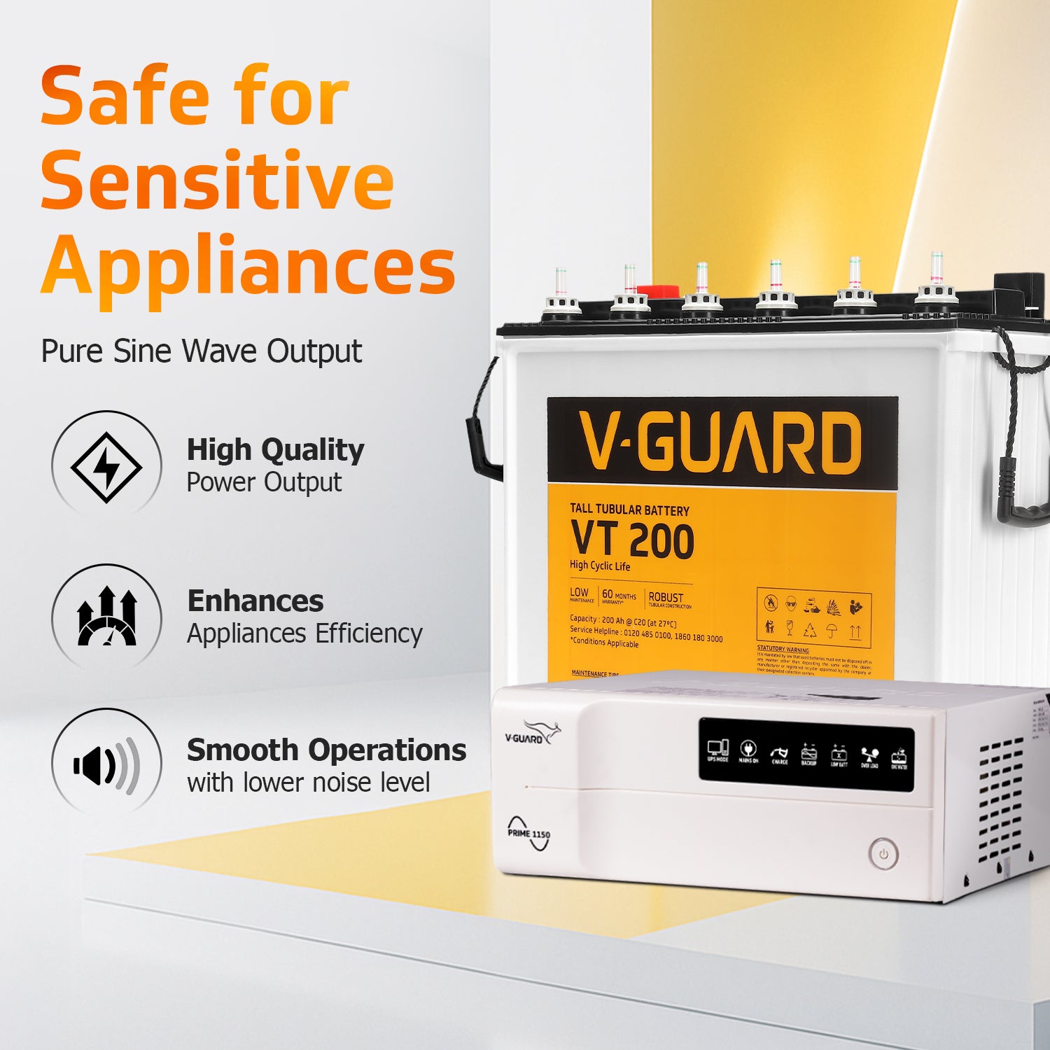Prime 1150 Inverter + VT 200 Battery Combo for Home, Office & Shops
