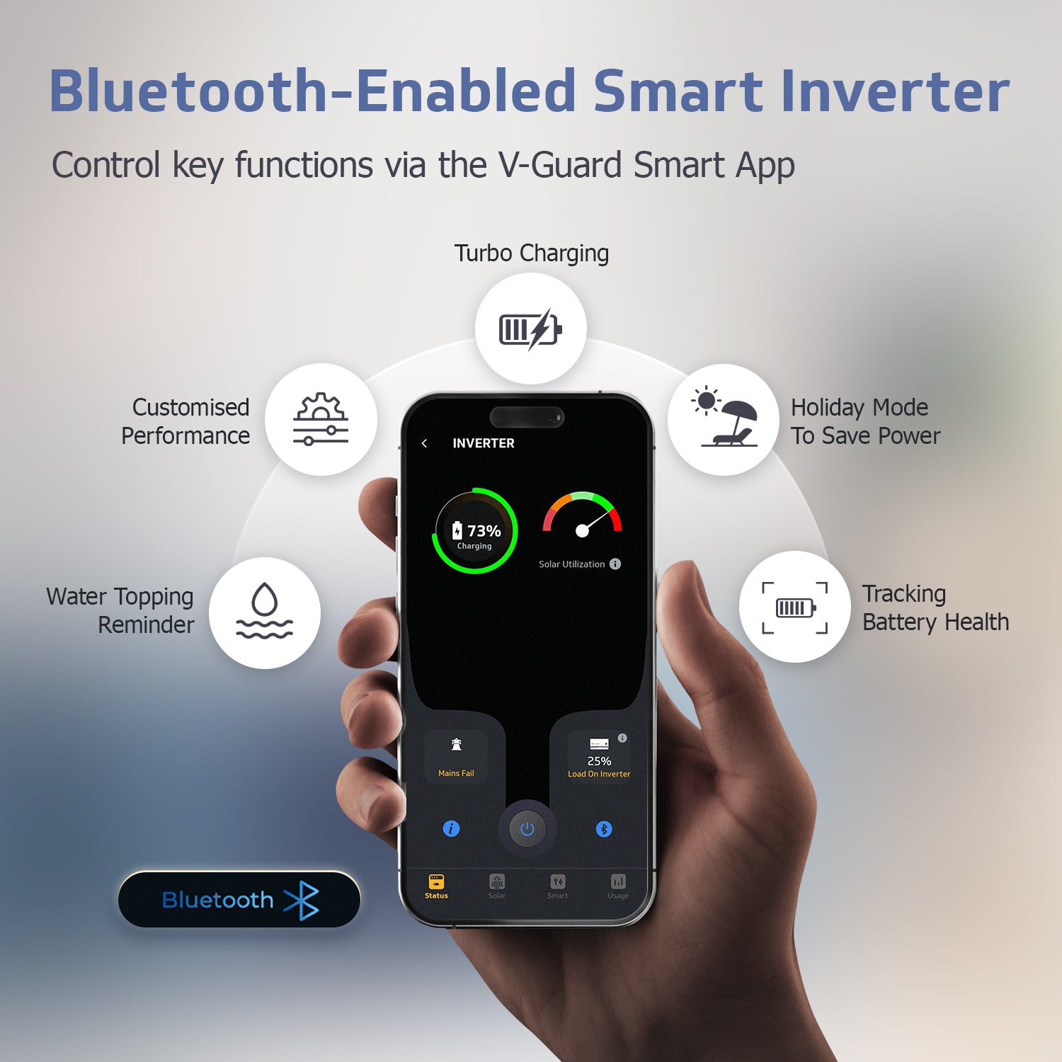 Experience smart power backup with the V-Guard Smart Pro 1200 Inverter and VT 165S Battery combo, designed for seamless performance and advanced control. The Smart Pro 1200 featrures DSC-based PWM technology for stable power delivery and enhanced protection against blackouts and voltage fluctuations. Its smart connectivity feature lets you monitor, configure, and control the inverter directly from your smartphone via a dedicated app, ensuring convenience at your fingertips. With a system-r...
