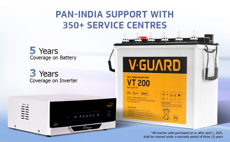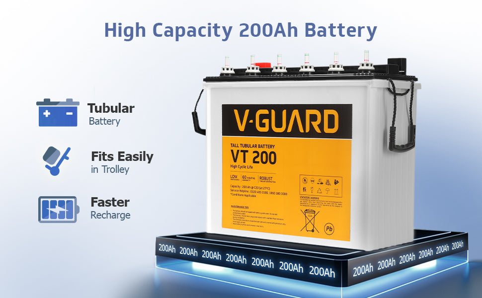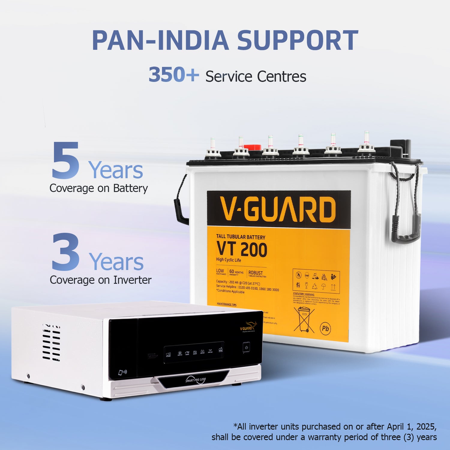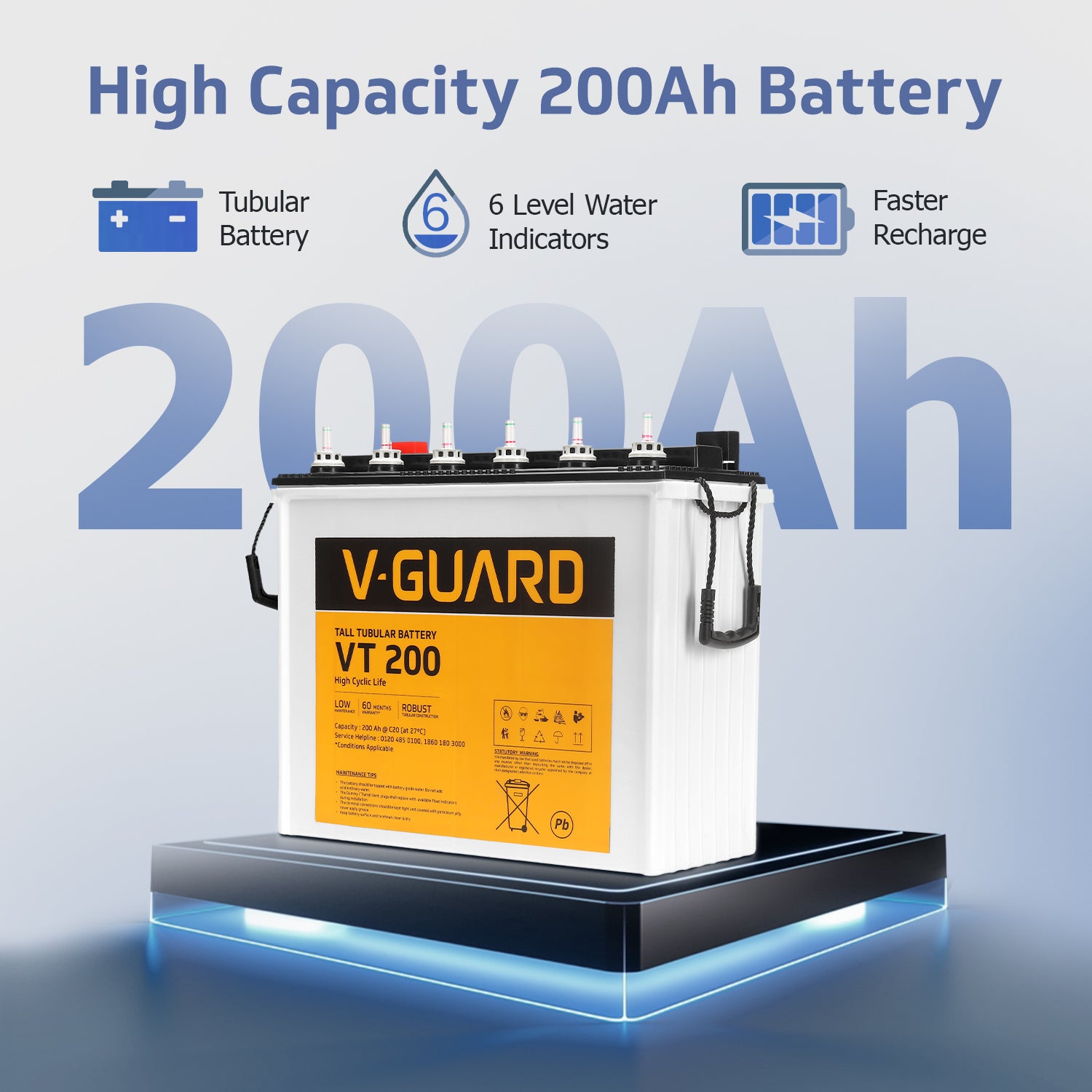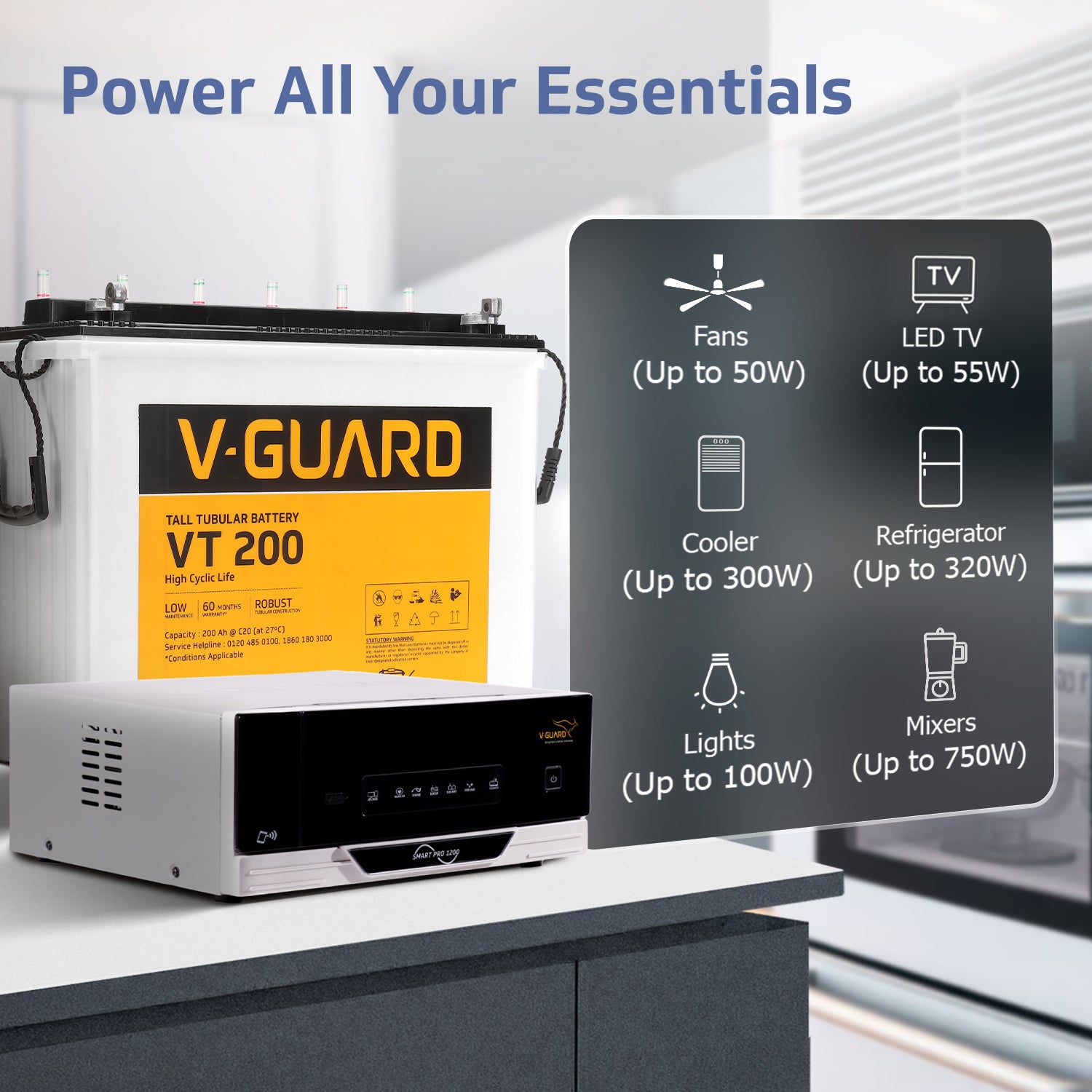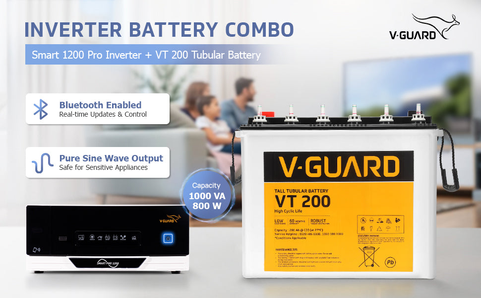 Elevate your home power backup experience with the V-Guard Smart Pro 1200 Inverter and VT 200 Tubular Battery Combo. This powerful duo is designed to provide seamless, and efficient solutions for modern homes.