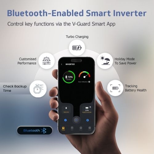 Experience smart power backup with the V-Guard Smart Pro 1200 Inverter and VJ 145 Battery combo, designed for seamless performance and advanced control. The Smart Pro 1200 features innovative DSC-based PWM technology for stable power delivery and enhanced protection against blackouts and voltage fluctuations. Its smart connectivity feature lets you monitor, configure, and control the inverter directly from your smartphone via a dedicated app, ensuring convenience at your fingertips. With a...