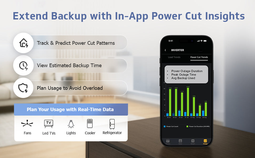 Smart Pro 1200 Inverter + VJ 145 Battery Combo for Home, Office & Shops