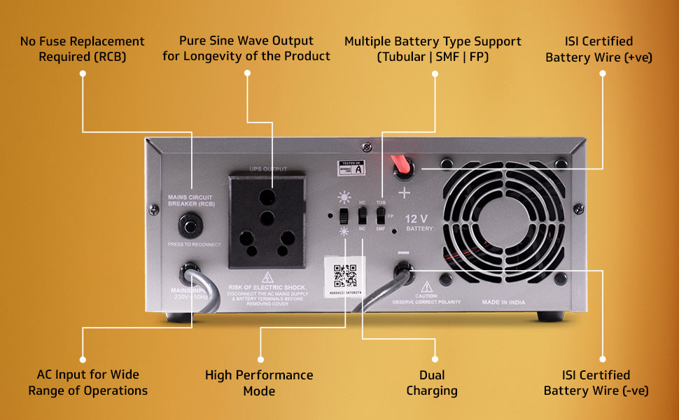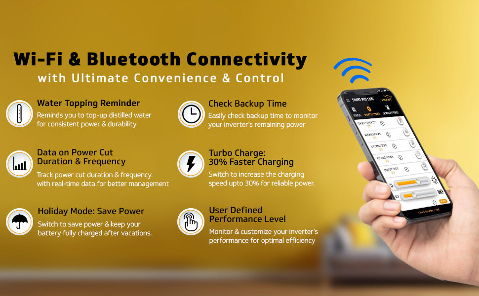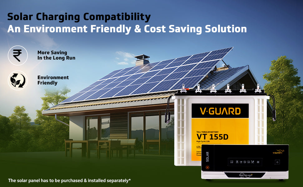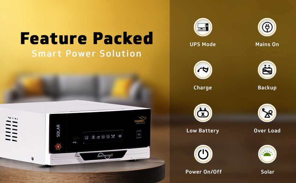 V-Guard Smart Pro 1200 S is the first advanced Digital-UPS (DUPS) in the market with solar compatibility (Solar Inverter) that works as per the customer needs and can be controlled using the V-Guard Mobile App. The features on the app include Appliance mode to run loads up to 1000 W (Electric Iron, Coffee maker, Toaster etc.), faster battery charging through Turbo Charge Mode, mute/unmute the buzzer, User Selectable Output, check battery time, check and increase the back-up time, data on t...