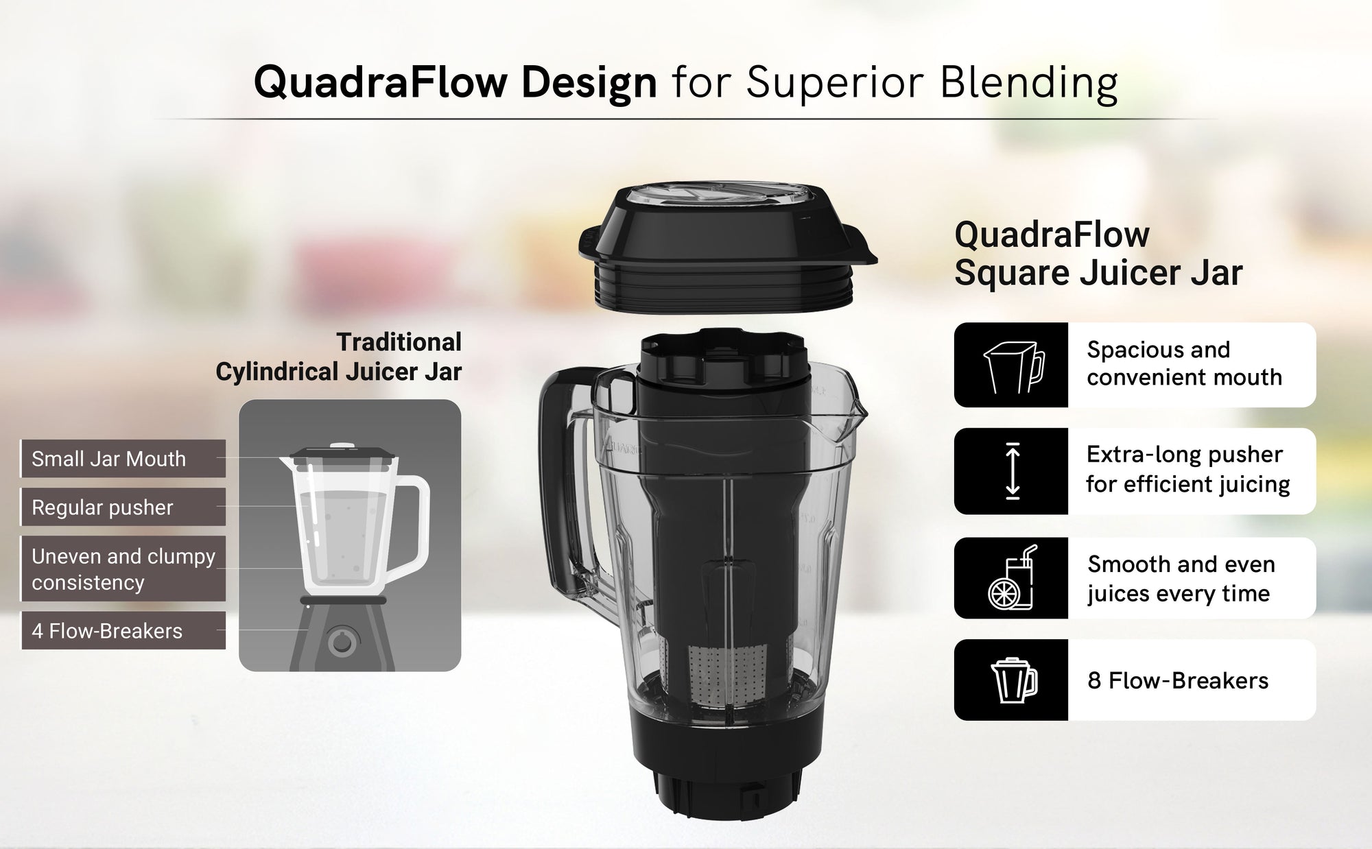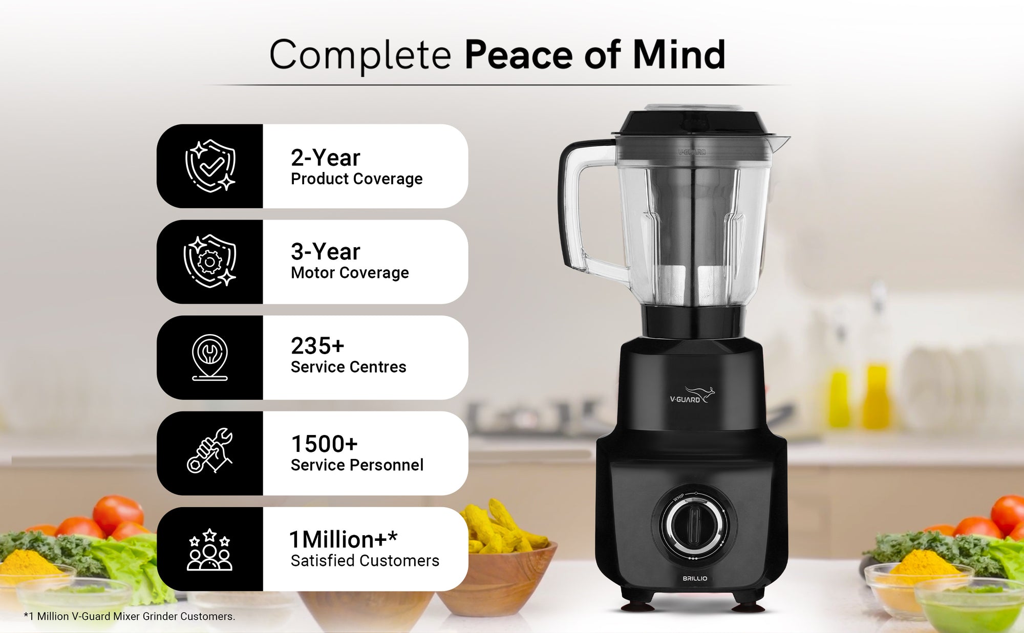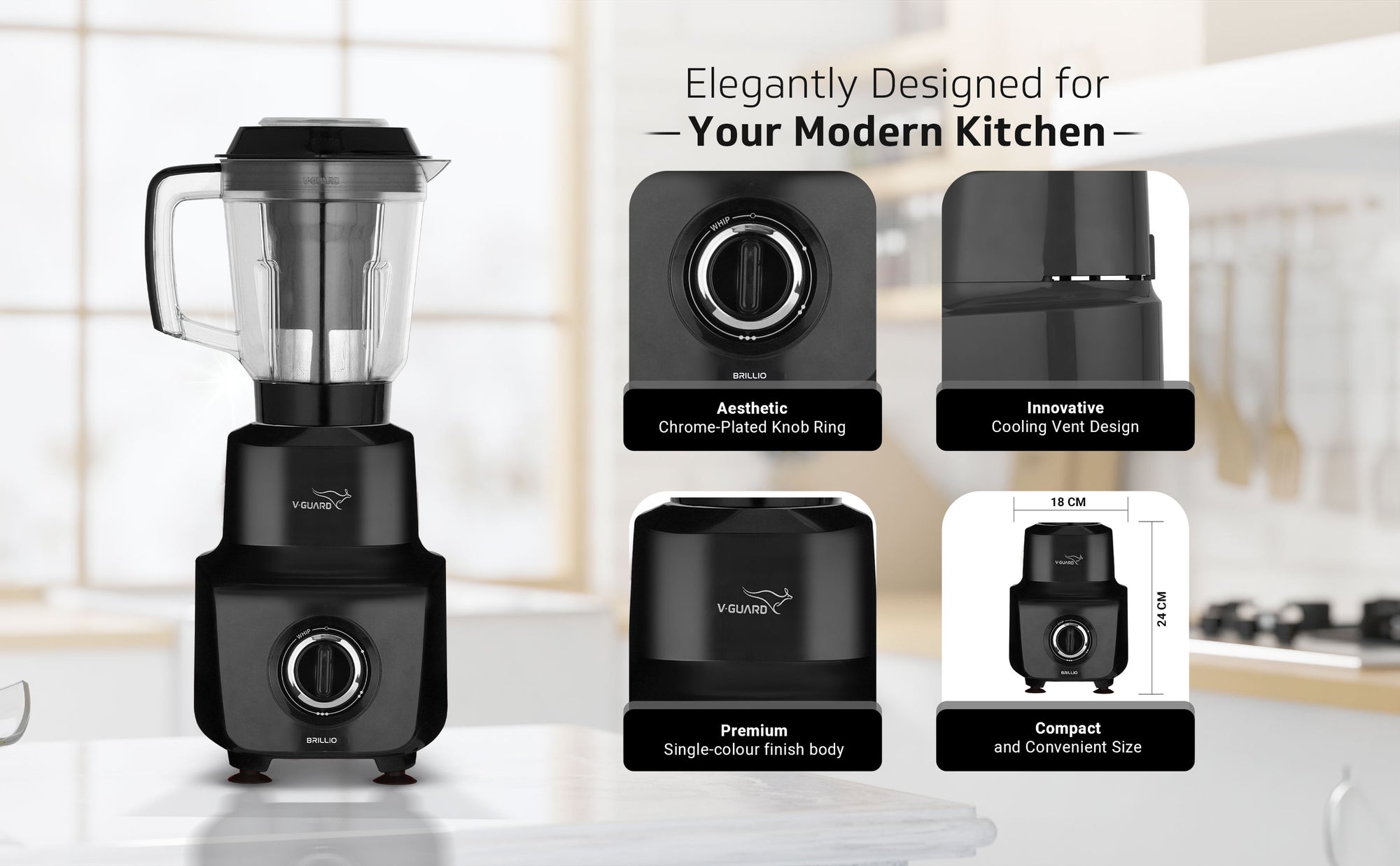 V-Guard Brillio 750 Watt Juicer Mixer Grinder|3 Year Motor Coverage by V-Guard | 4 Jars | Juicer, Wet, Chutney & Dry | Sturdy Juicer Jar With Quadraflow Design | Precision Blend SS Blades | Black