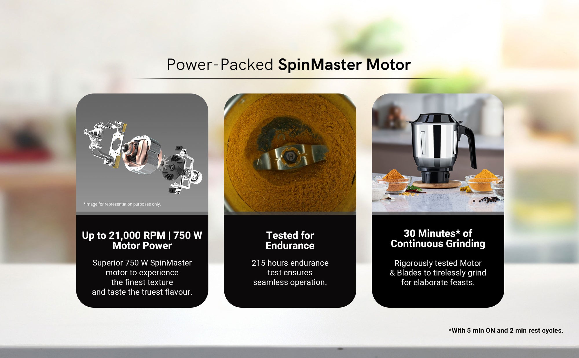 Introducing V-Guard Brillio Juicer Mixer Grinder - your perfect kitchen companion for diverse Indian tastes! With a powerful 750 W motor that reaches fast speed of up to 21,000 RPM, this V-Guard mixer grinder is designed to deliver exceptional performance for all your diverse juicing, blending and grinding needs, making your kitchen tasks a breeze. Built to withstand the rigours of a busy Indian kitchen, the V-Guard Brillio Mixer Grinder features a 750 W SpinMaster motor that undergo...