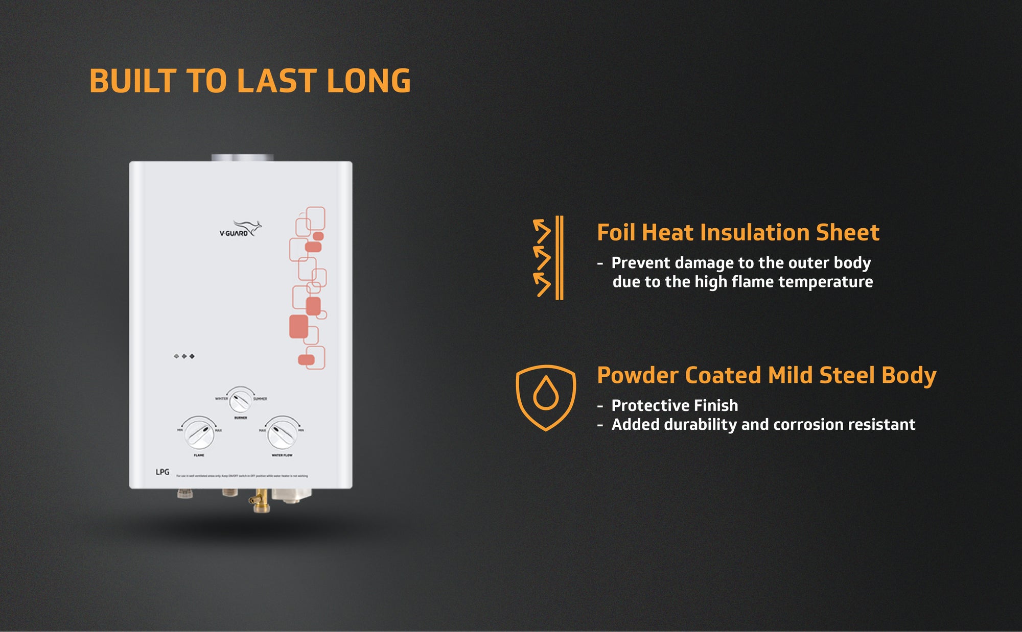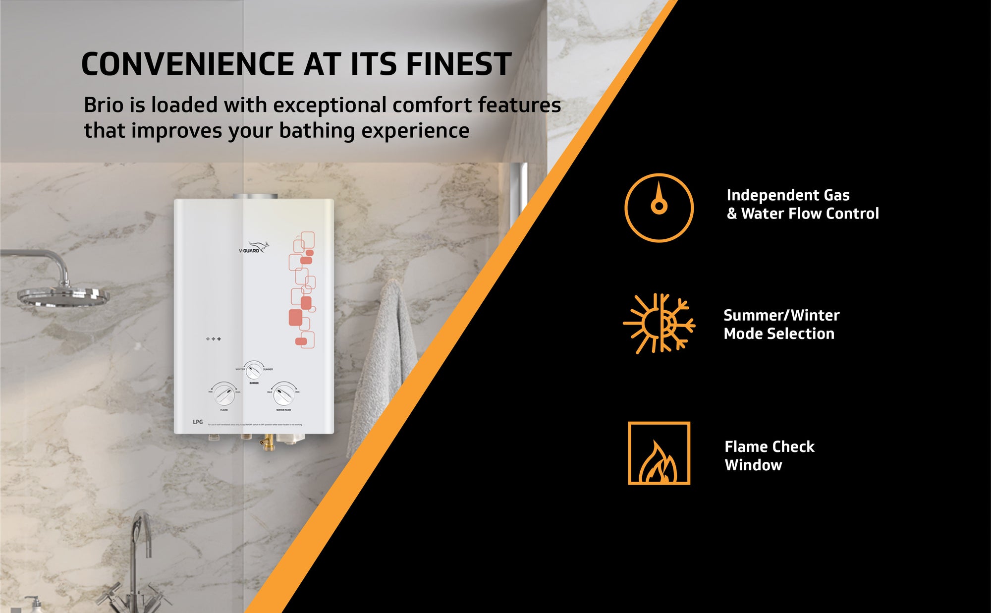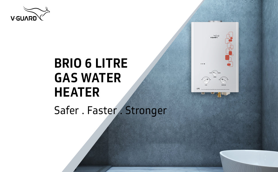 V-Guard Brio 6 Litre LPG Gas Geyser for Bathroom | 9-Layer Advanced Safety | Summer-Winter Mode | Flame & Water Control Knob | Child Safety Lock | White
