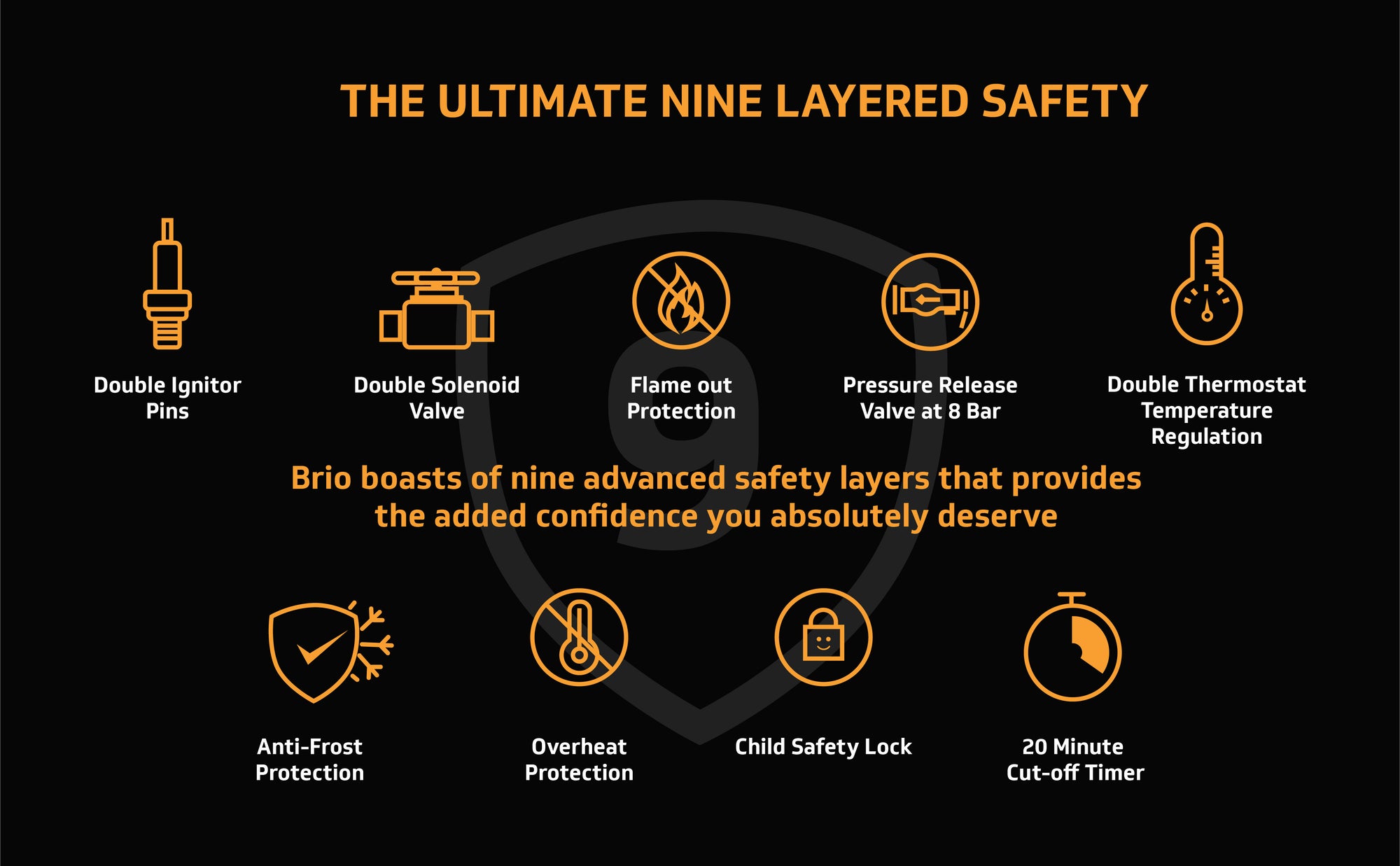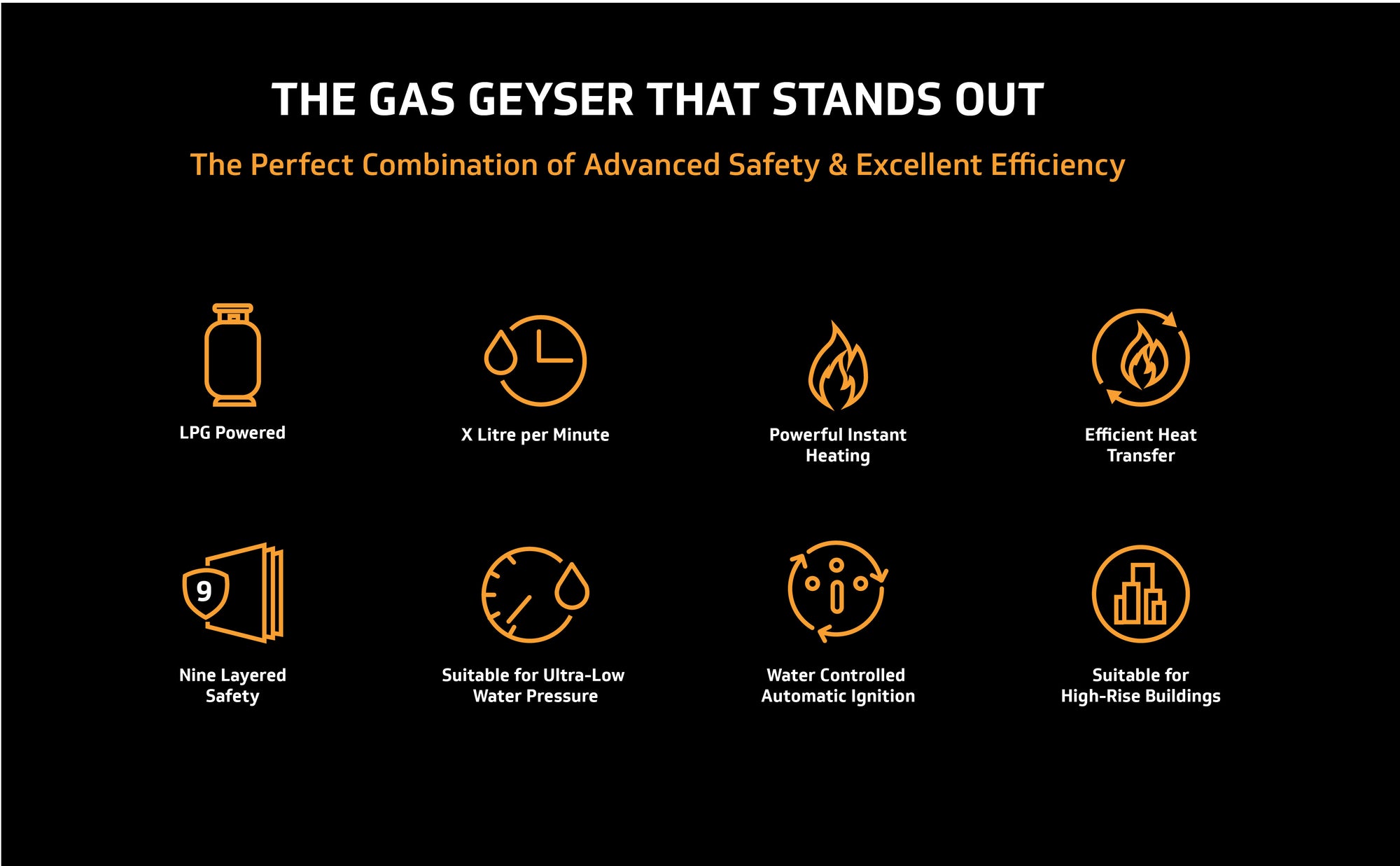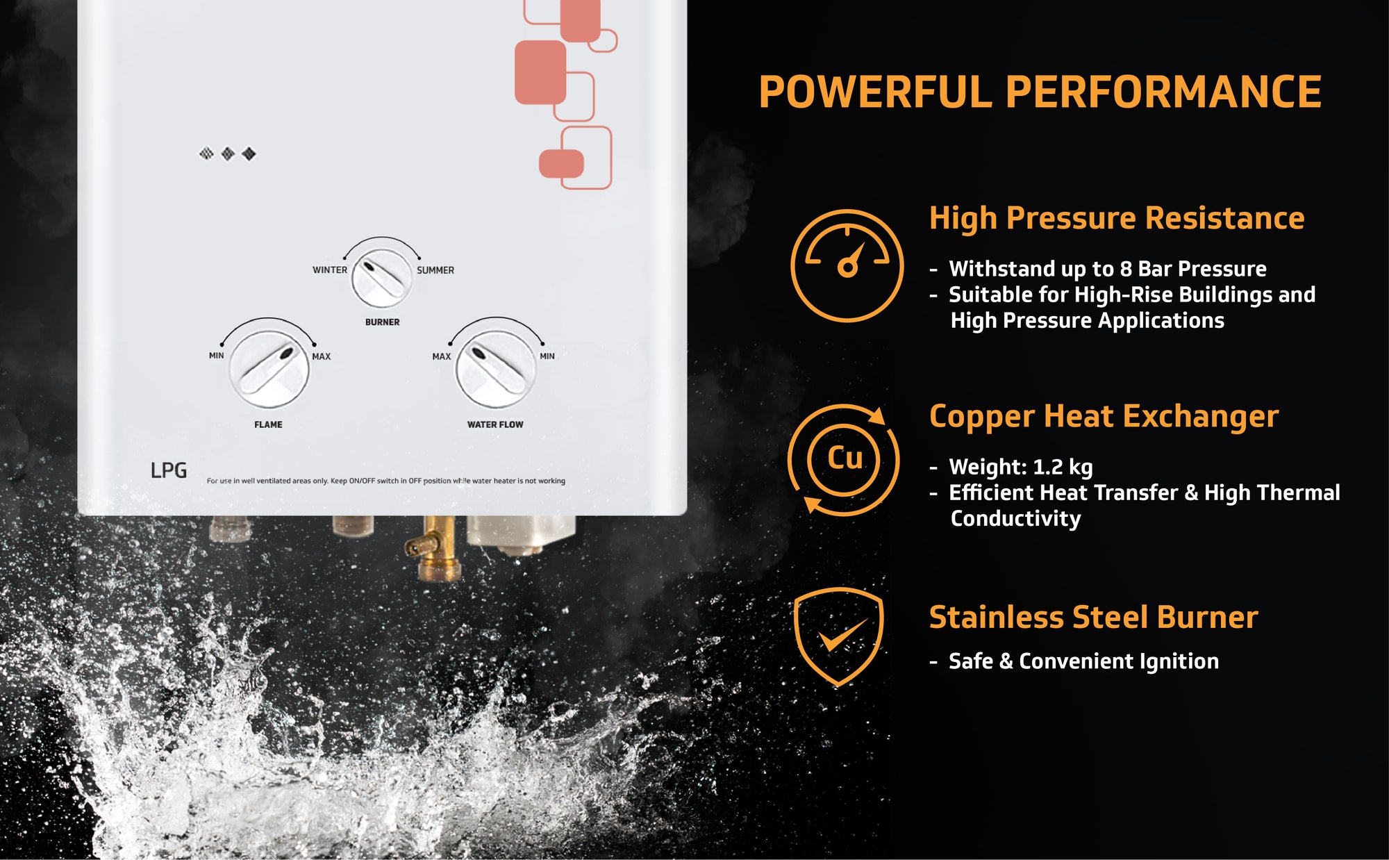 V-Guard Brio 6 Litre LPG Gas Geyser for Bathroom | 9-Layer Advanced Safety | Summer-Winter Mode | Flame & Water Control Knob | Child Safety Lock | White