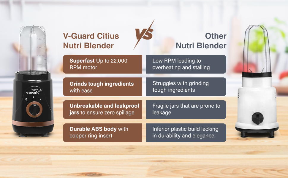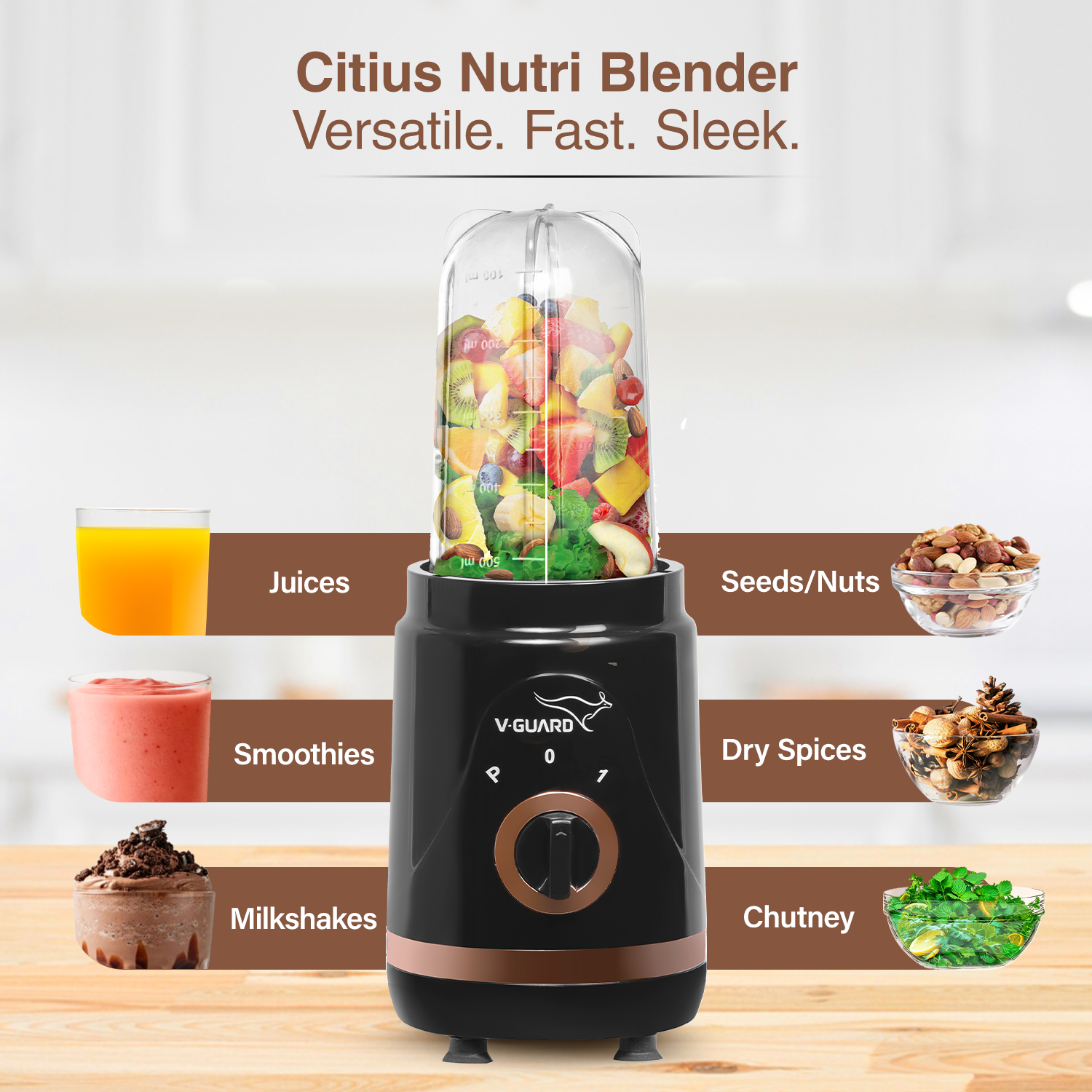 V-Guard Citius Nutri Blender | Bullet Mixer Grinder Juicer | 2 Leakproof Jars | 2 Years Product & Motor Coverage by V-Guard | 400 W Copper Motor | Up to 22,000 RPM | 1 Storage & 1 Sipper Lid