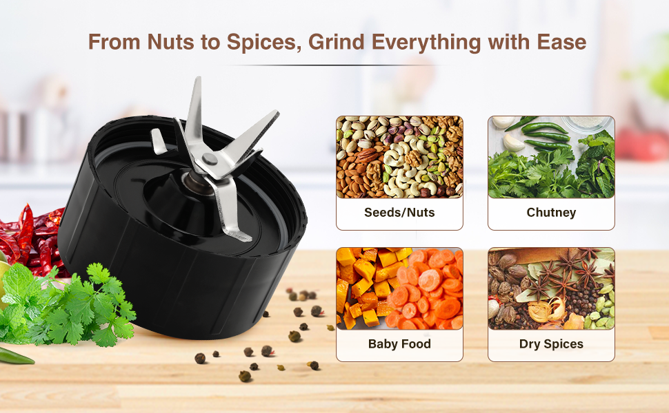 1 NUMBER OF MAIN UNIT, 0.5 L MEDIUM JAR, 0.3L SMALL JAR, BLADE ATTACHMENT, SIPPER LID, STORAGE LID &USER MANUAL