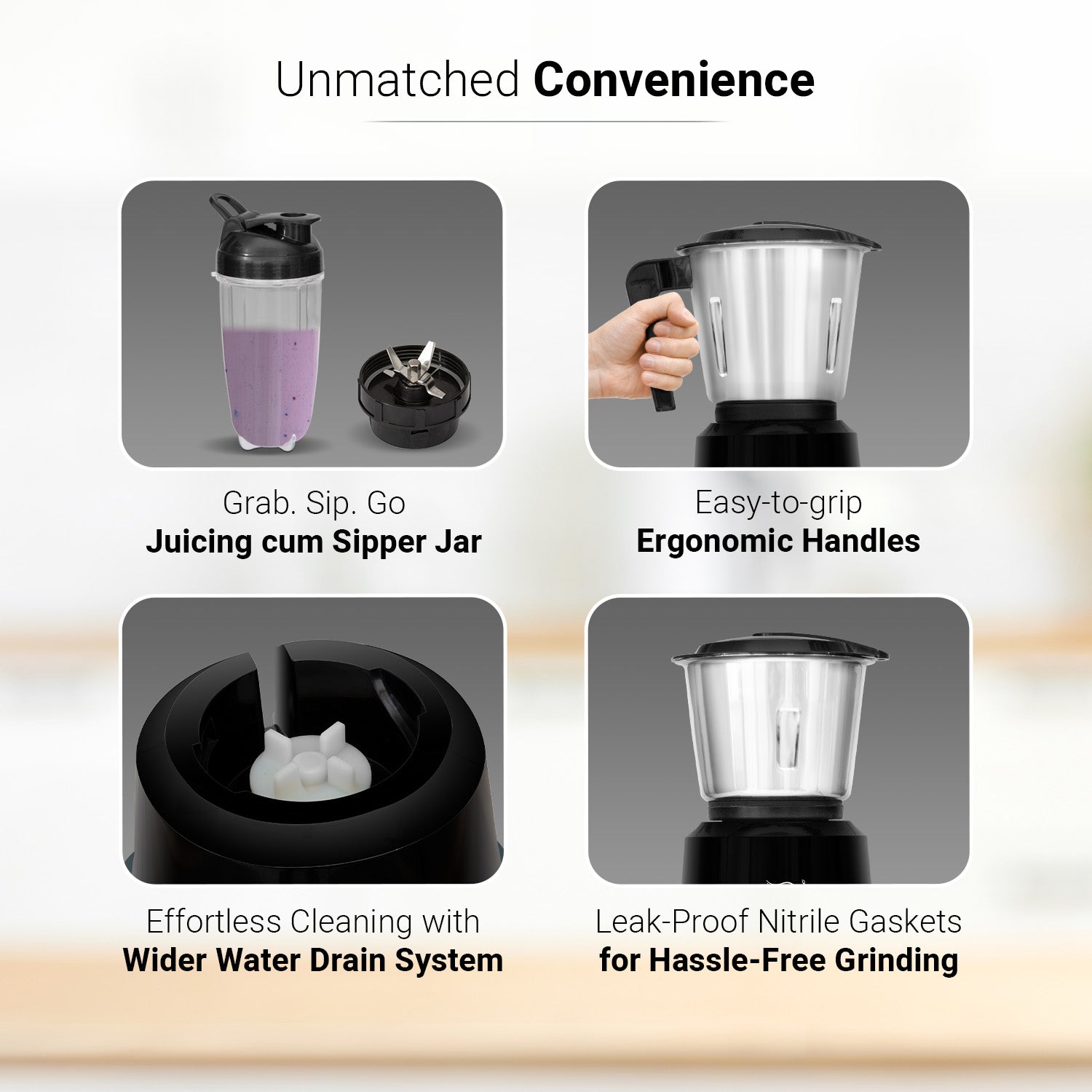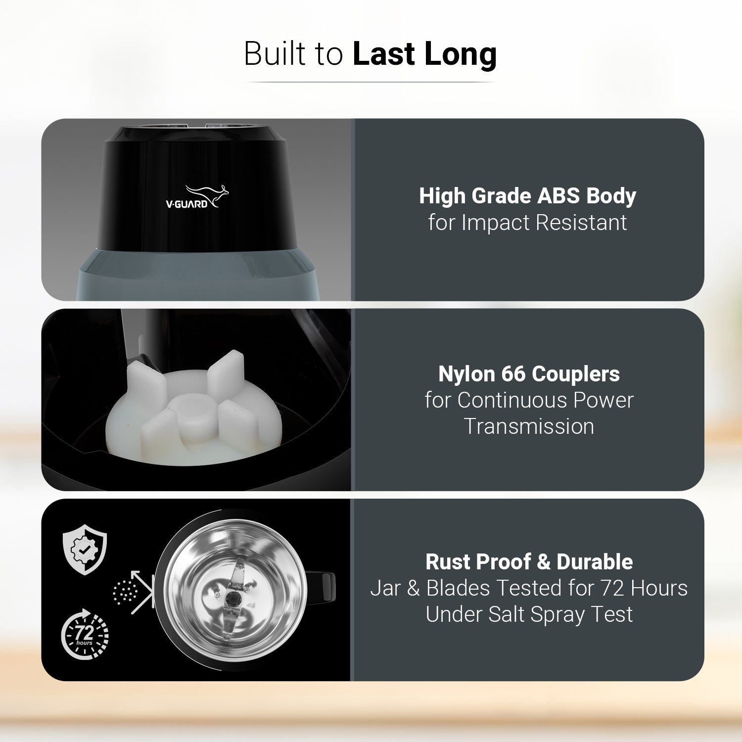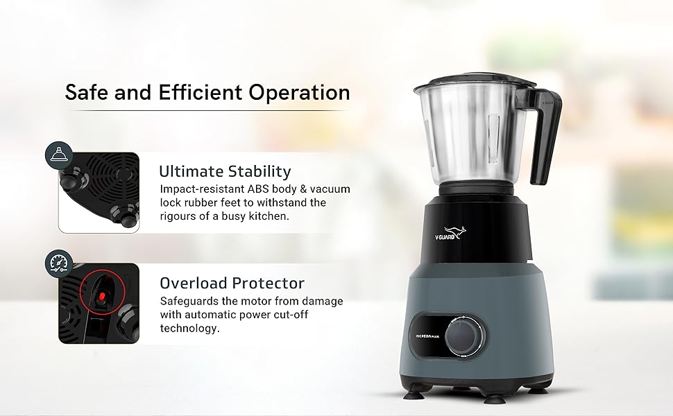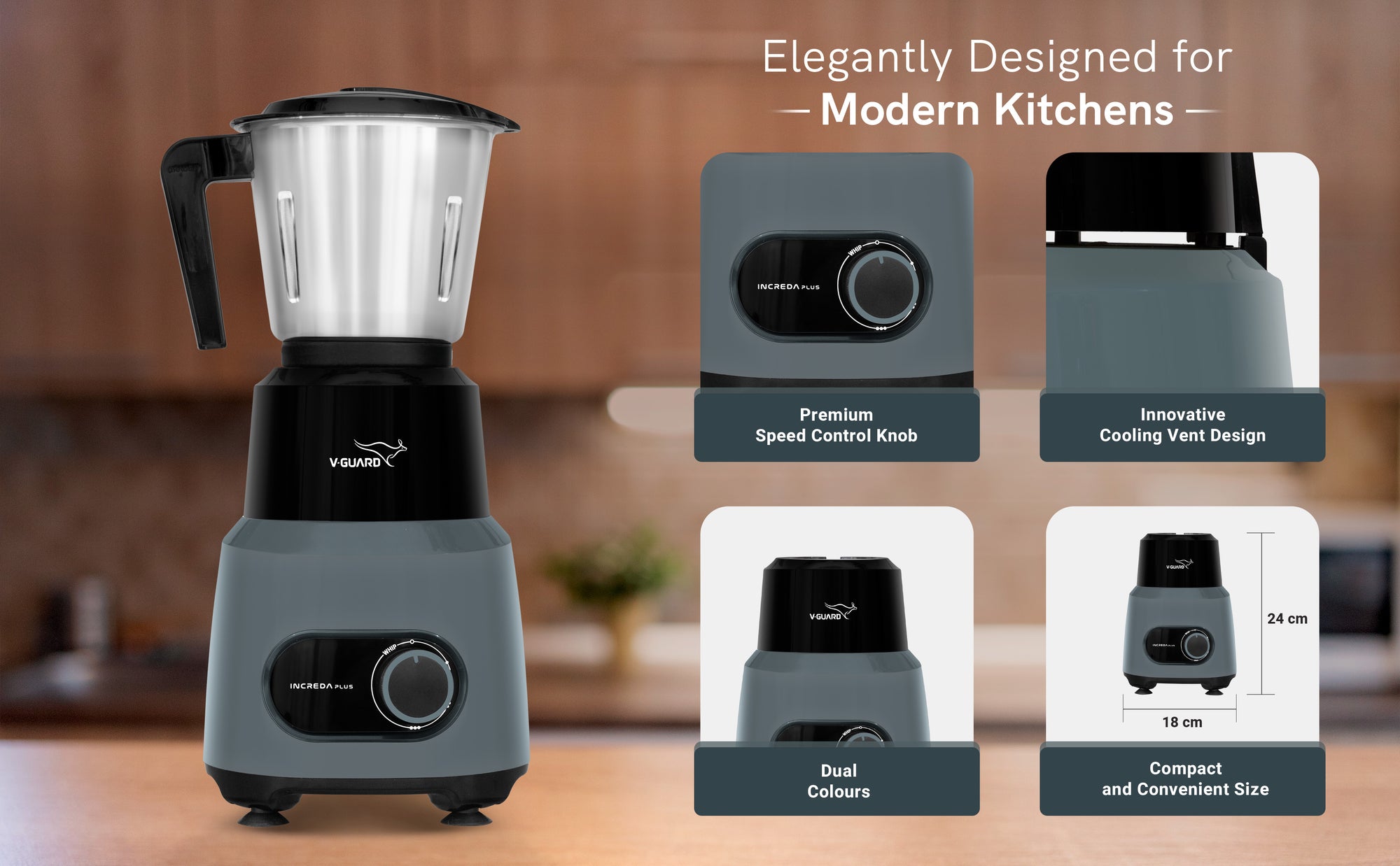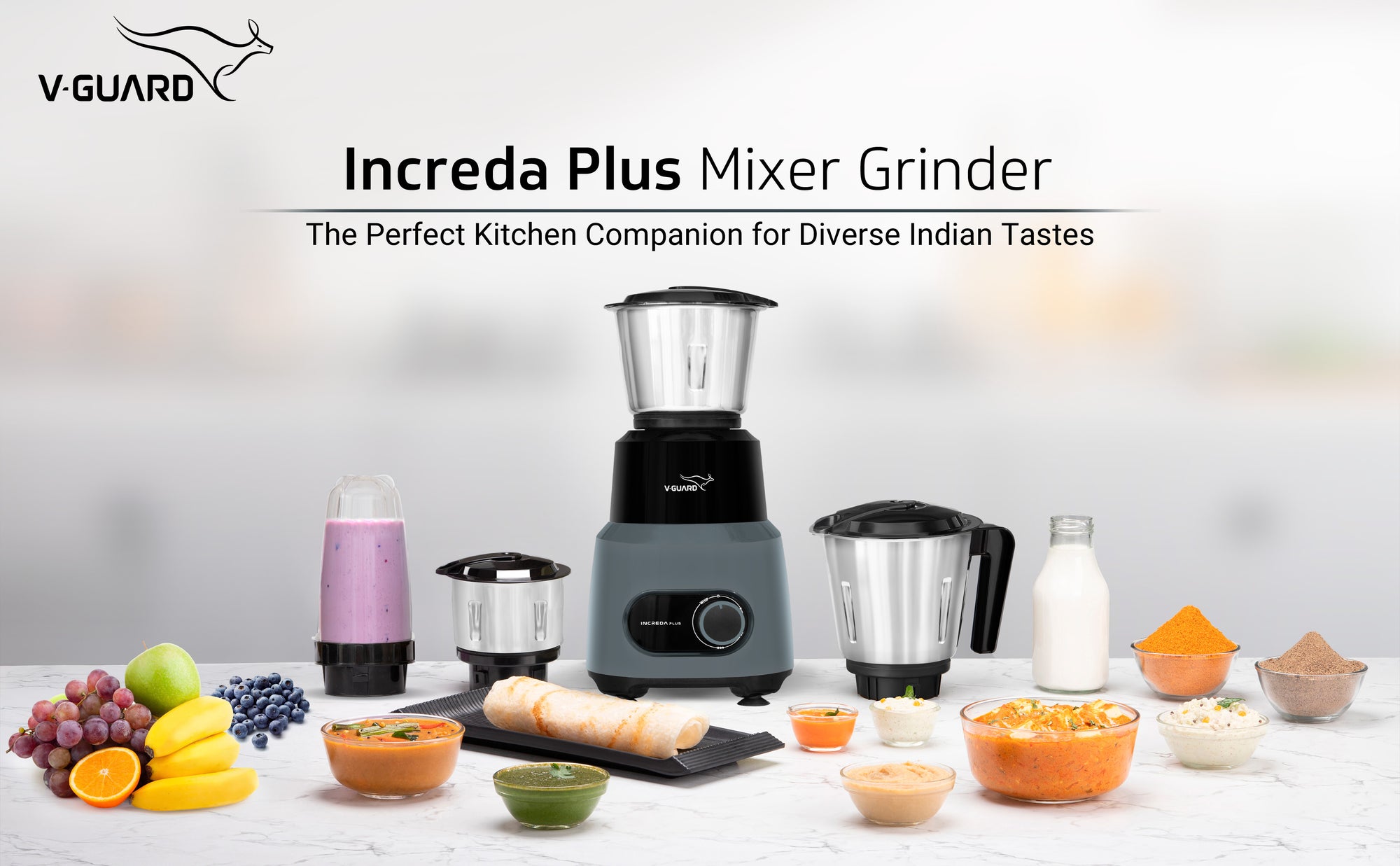 Upgrade your kitchen with the V-Guard Increda Plus Mixer Grinder, designed for efficient, fast, and hassle-free use. Its 500 Watt SpinMaster motor operates at speeds of up to 20,500 RPM and handles a variety of ingredients with ease. Equipped with 4 versatile jars (Bullet, Wet, Dry, and Chutney), it caters to all juicing, blending and grinding needs. The durable Precision Blend stainless steel blades ensure consistent results. The Bullet jar comes with a sipper lid for on-the-go convenienc...