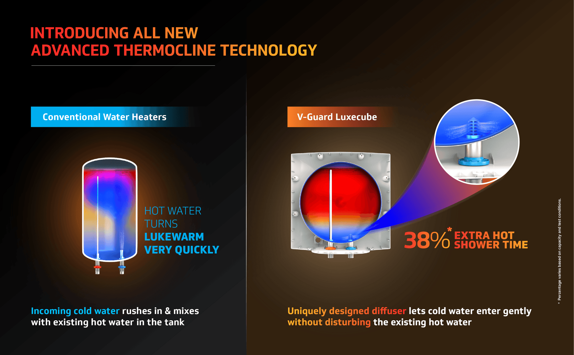 V-Guard Luxecube Avo Smart 25 Litre Geyser | Up to 38% More Hot Water | Dynamic Luxe Glow Pro Illumination | BEE 5 Star Rating | 3 Year Product & 10 Year Tank Warranty from V-Guard | White
