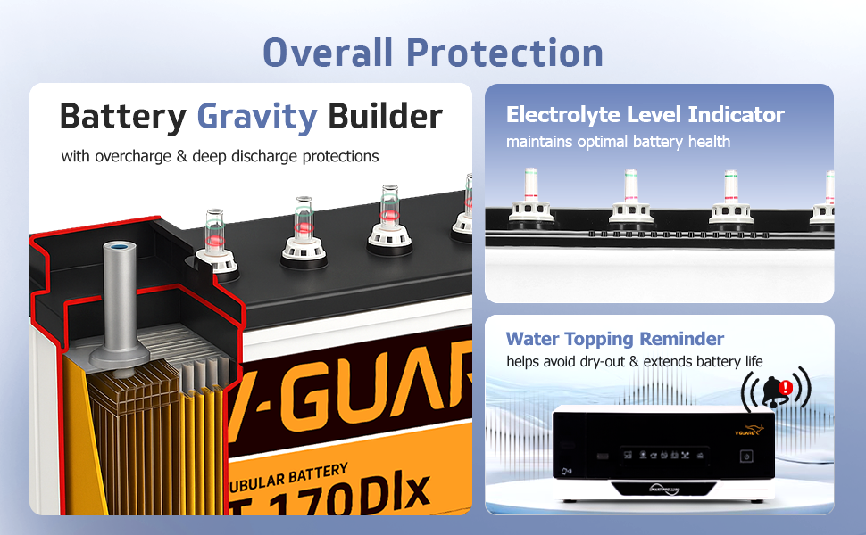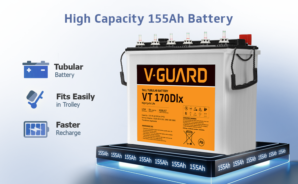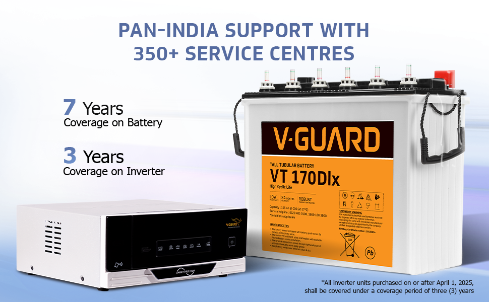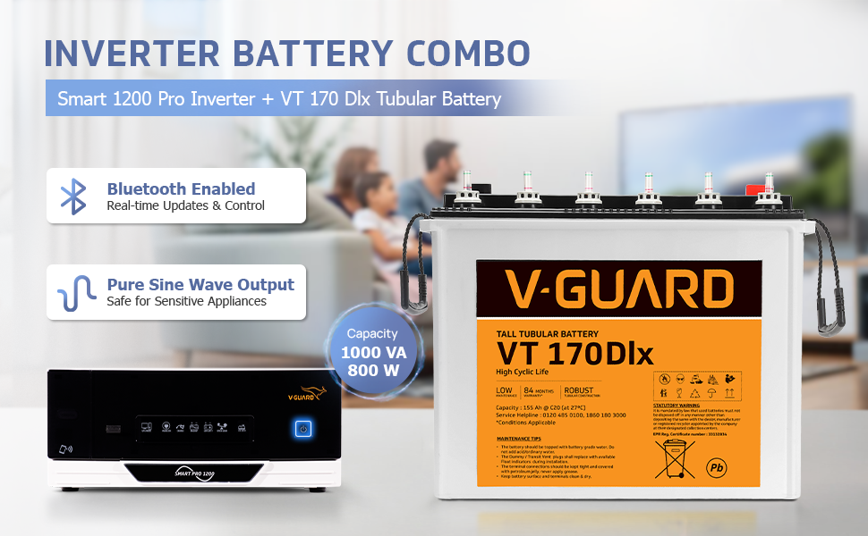 V-Guard Smart Inverter & Battery Combo (Smart Pro 1200 Digital Sine Inverter with VT 170 DLX (155Ah Tall Tubular Battery)) for Home, Office & Shops