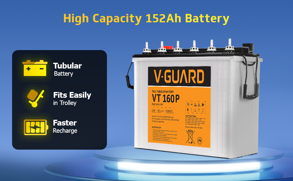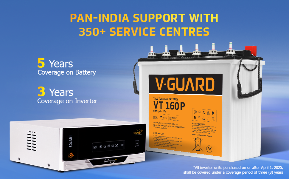 V-Guard Smart Inverter & Battery Combo (Smart Pro 1200 S Solar Inverter with VT 160 P (152Ah Tall Tubular Battery)) for Home, Office & Shops