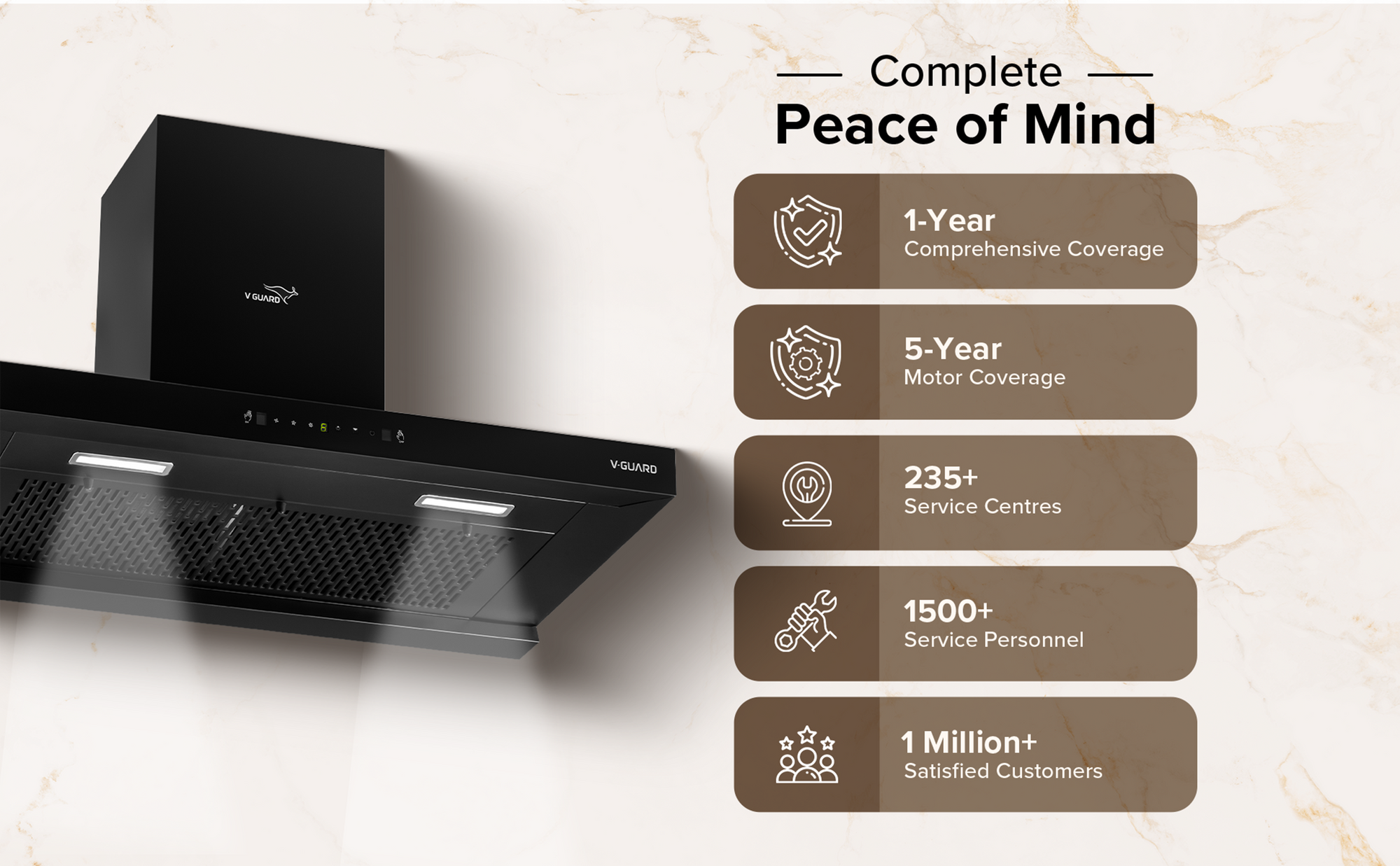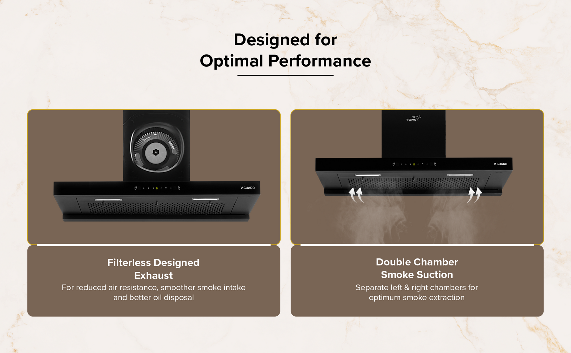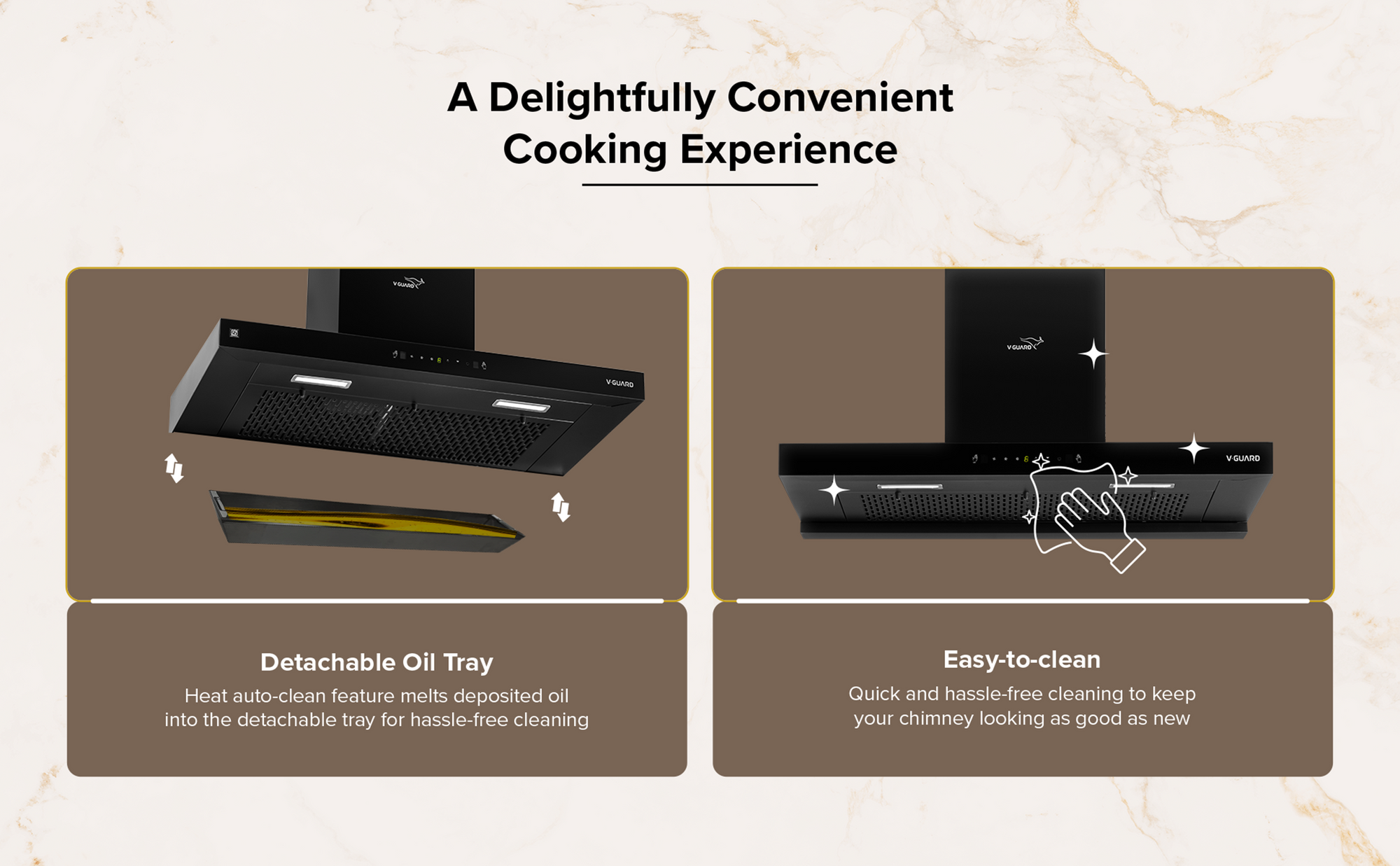 Introducing V-Guard T20, a high-performance 90cm kitchen chimney – the ideal addition to your cooking space. This electric chimney for kitchen effectively removes smoke, fumes, and airborne particles, ensuring a fresh cooking environment. With a sleek, modern design, the T20 chimney not only enhances your kitchen's aesthetics but also provides powerful suction, efficiently eliminating smoke and fumes. Built to last, it features durable materials and a reliable motor for long-lasting perfor...