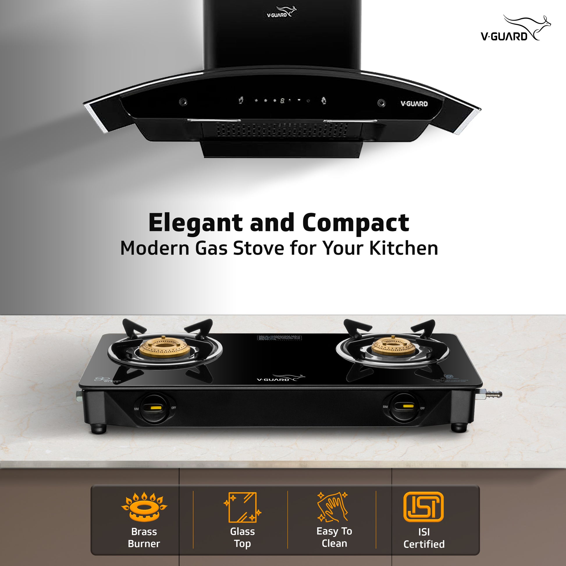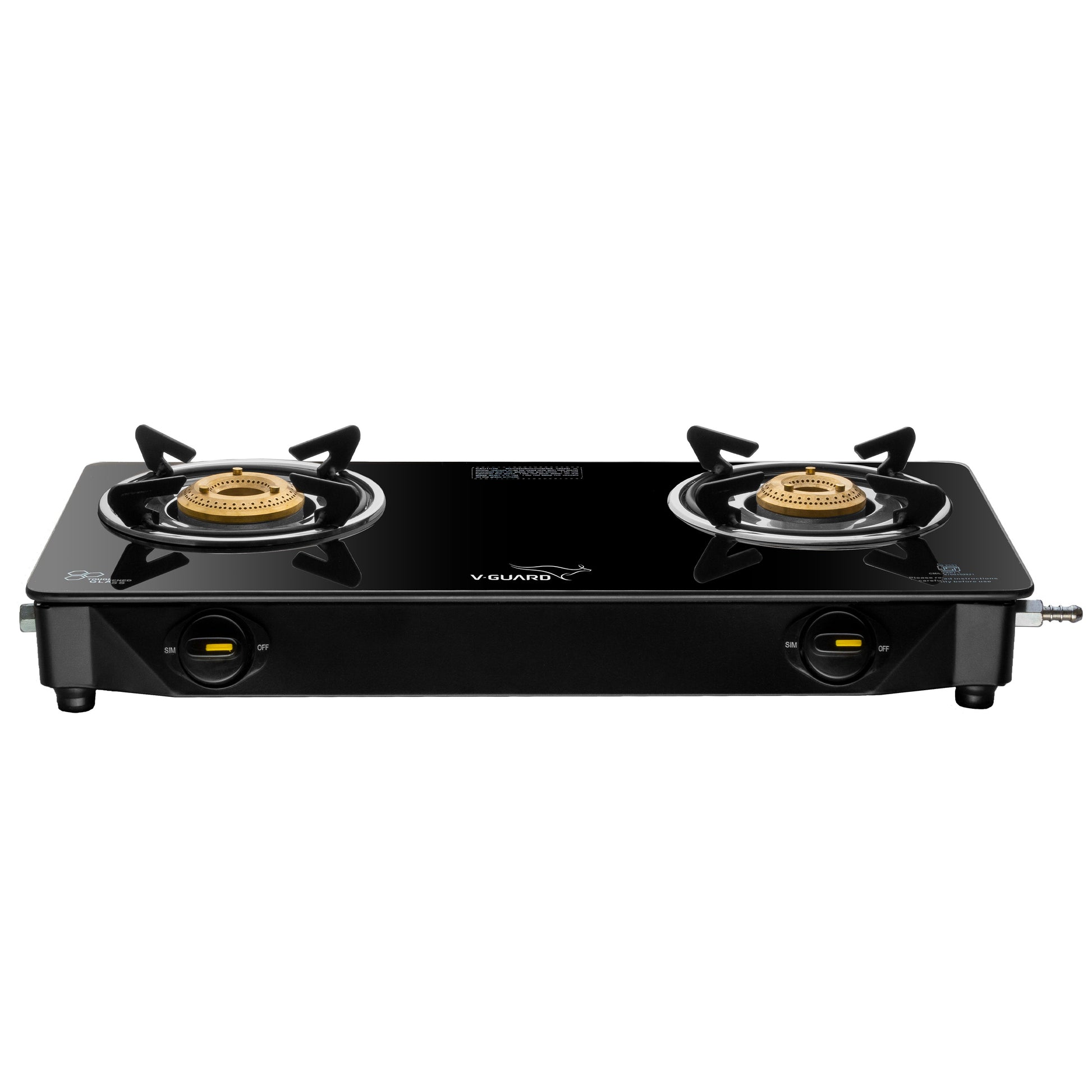 V-Guard VGD 257 PI 2 Burner Gas Stove | Compact & Elegant Gas Stove | 1 Large and 1 Medium High-Efficiency Brass Burner | Toughened Glass Top | 1 Year Coverage by V-Guard
