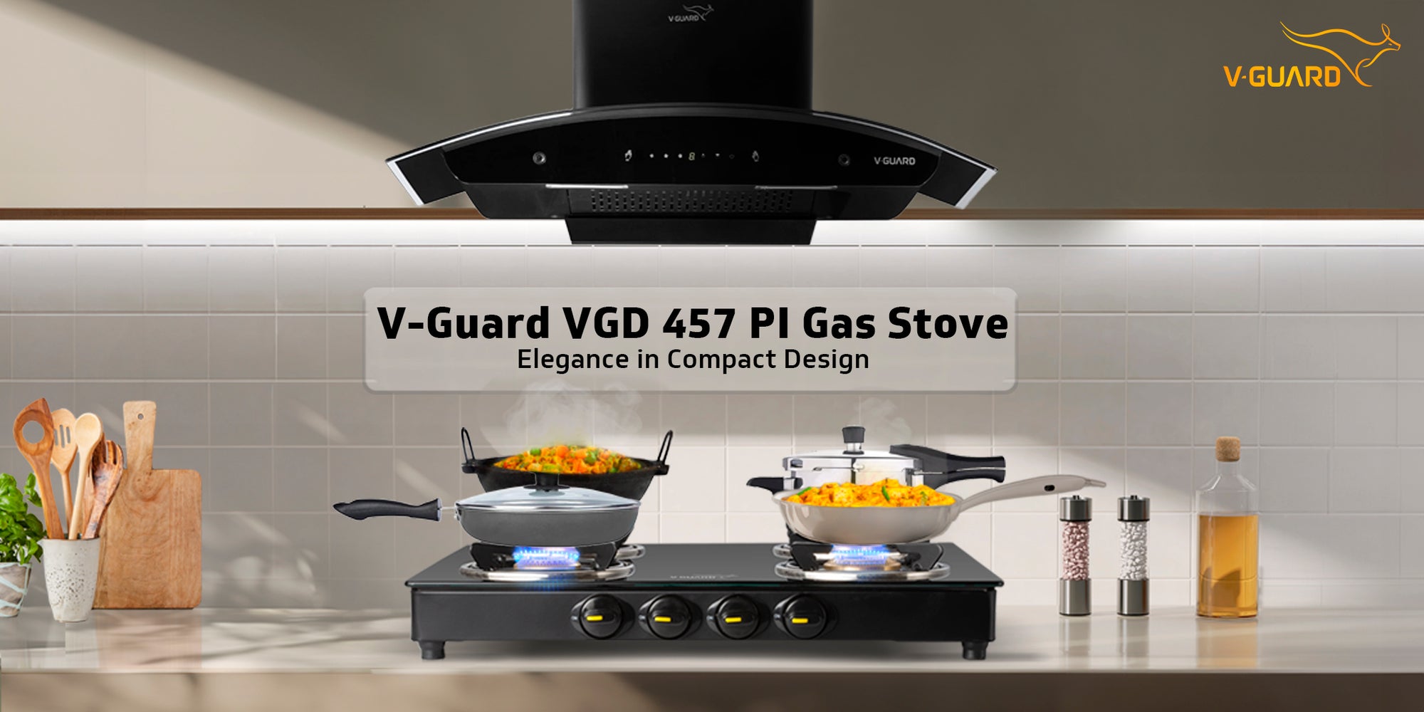 V-Guard VGD 457 PI LPG Gas Stove is a compact & elegant cooking solution designed to enhance your kitchen's style and functionality. With compact dimensions of 57.5 cm(L) x 50 cm (B) x 7.8 cm (H), this stove fits seamlessly into any kitchen while providing a sleek, modern appearance. It features 4 high efficiency brass ensuring optimal fuel usage and durability. Its premium toughened glass top not only adds a touch of elegance but also makes it easy to clean, resisting oil & stains...
