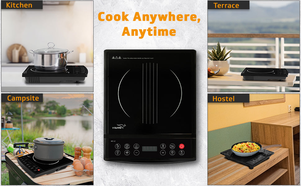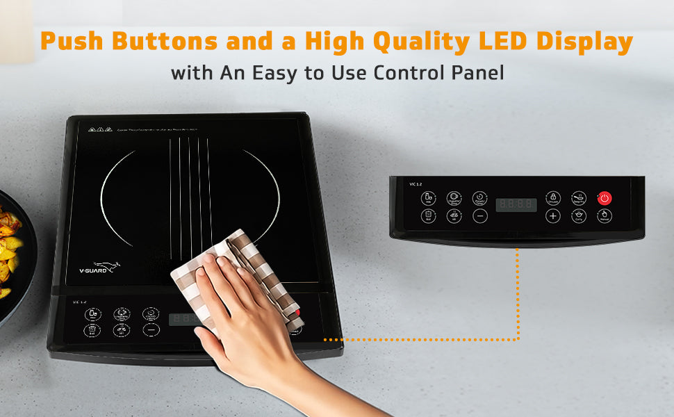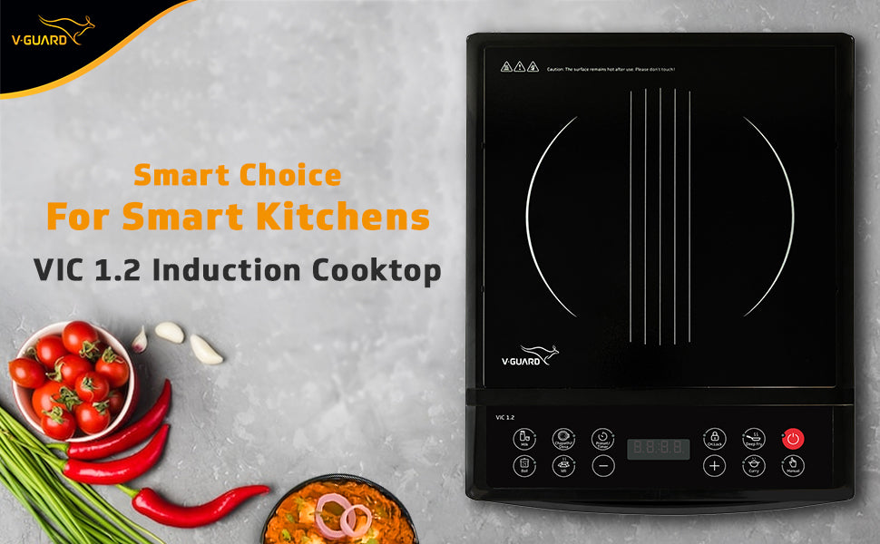 V-Guard VIC 1.2 Induction Cooktop | 1200 Watt Electric Induction Stove with 3 year Coverage on Induction Coil by V-Guard | Push Button Control | 7 Power Levels | Temperature Control | Auto-cut off