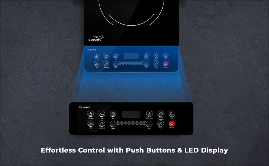 V-Guard VIC 2.0 BRE Induction Cooktop| 2000-Watt Electric Induction Stove with 3 KV Surge Protection | 3-Year Coil Coverage by V-Guard | Push Button Control | Auto-Cut off with 8 Temperature Levels