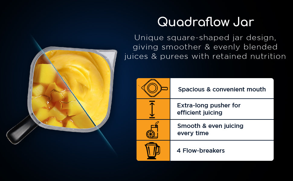 A:Place the juicer jar on the mixer grinder and lock it properly. Place the fruit filter exactly in the provision made and turn it clockwise to lock it. Fill the ingredients (small cut pieces of the fruit). Place the juicer lid & lid cap on the jar & press to fit. Switch “ON” the mixer grinder and whip gradually. Use the speed 1st, 2nd& 3rd, depending on the fruit. Keep hands on the jar lid while the mixer grinder is in operation. Remove the lid cap and add required quantity of water and sugar. Place the lid cap again and continue the operation. Remove the lid and place the pulp pusher for more extraction of juice and operate further if required. Turn the lid position anti-clockwise &pour juice from the jar. Remove the lid, pulp pusher, fruit filter from the jar and clean it properly after use.