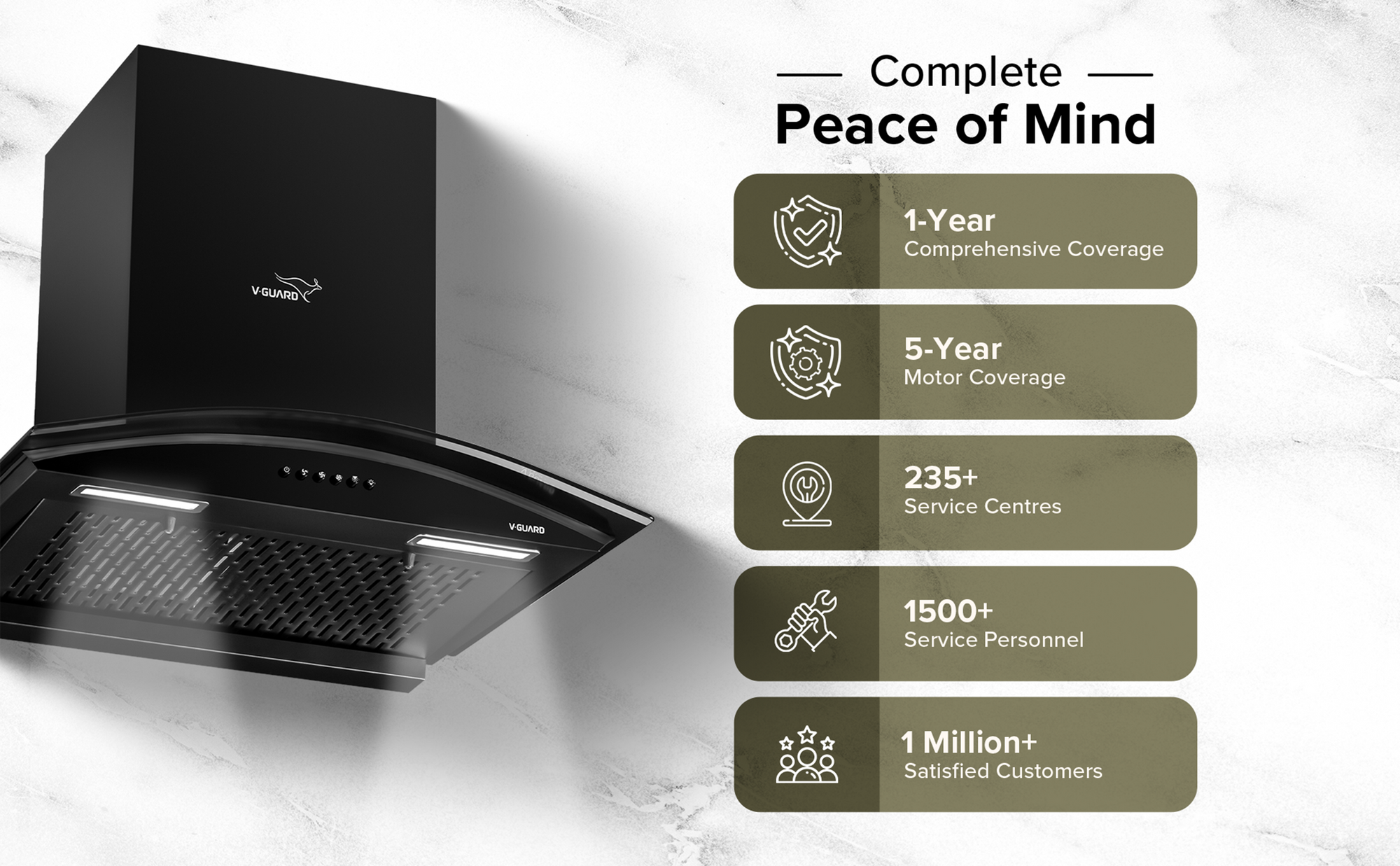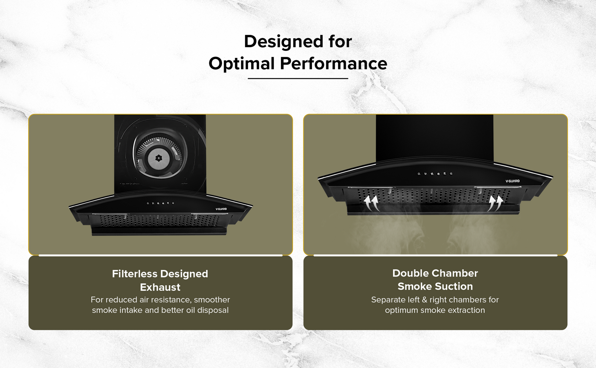 V-Guard Y10 Filterless Kitchen Chimney | 60 cm | 1200 m³/h High Suction Capacity | Heat Auto-Clean | Push-Button Control | 1-Year Comprehensive & 5-Year Motor Coverage