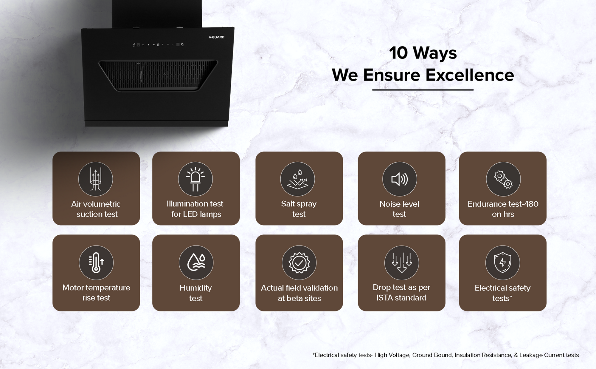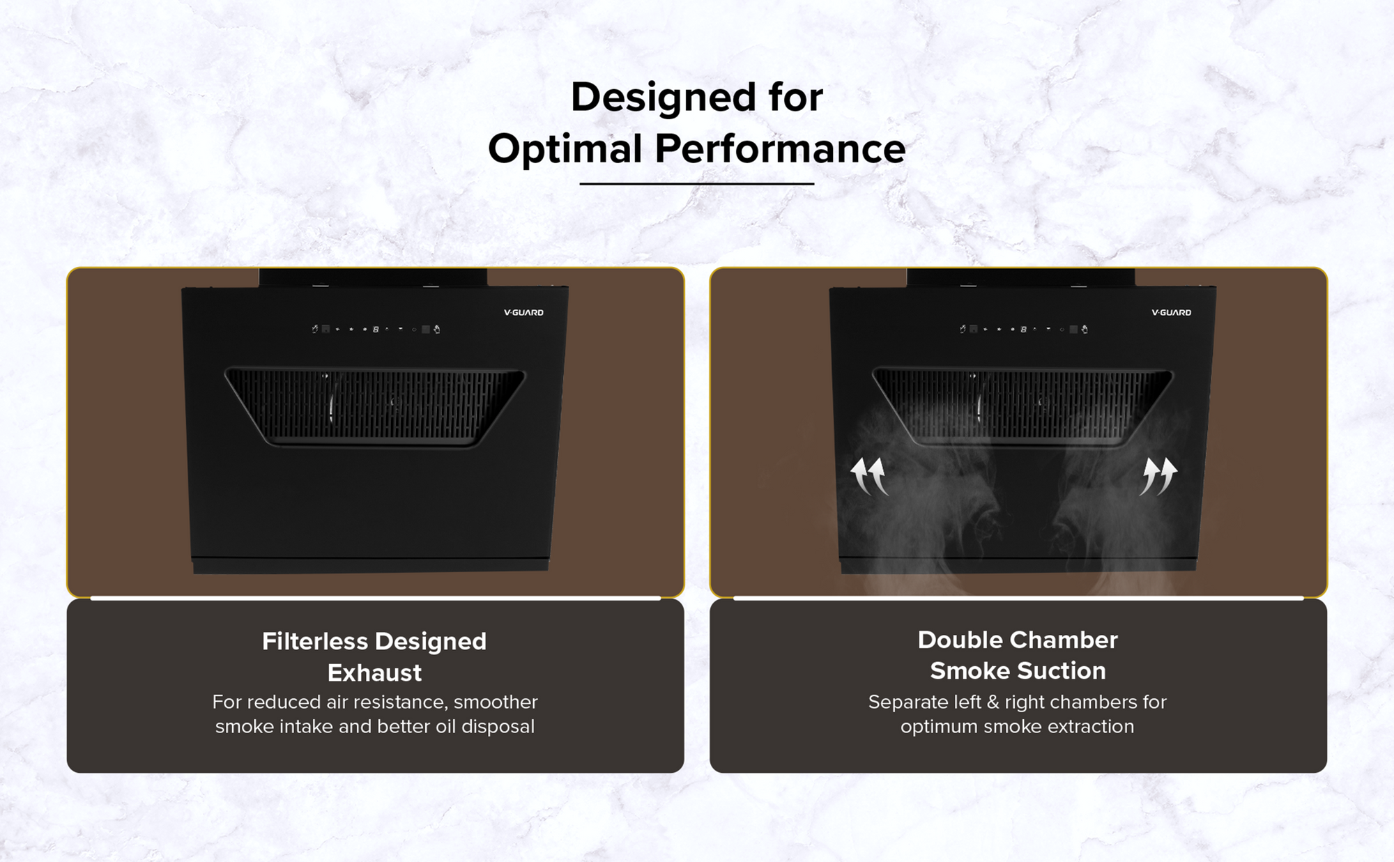 Introducing the V-Guard Z10 Neo 60 cm wide Kitchen Chimney—a sleek and powerful chimney for kitchen use that modernises any kitchen. With its 1300 m³/hr suction capacity, this kitchen chimney for home is perfect for Indian cooking, effectively removing smoke and lingering odors. The Z10 Neo's advanced filterless design means less hassle in maintenance, offering more time to enjoy your culinary creations—a key benefit in kitchen chimney solutions. The Z10 Neo stands out as an electric chimn...
