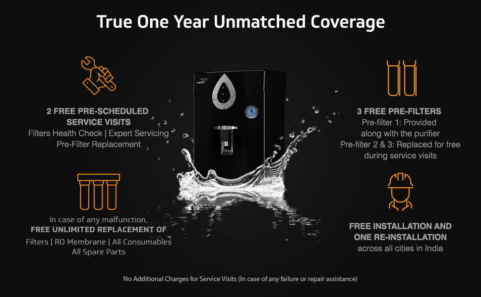 Two Pre-Filters will be changed on free of cost during the first year i.e. pre-filer will be changed in 5th month and 11th month.