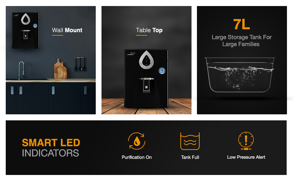 V-Guard Zenora RO UF Water Purifier for Home | Up to 40% Water Recovery | 7 Stage Purification | 1 Year Unconditional Warranty by V-Guard | GEEF Global WaterTech Award 2024 Winner | 7 Litre, Black