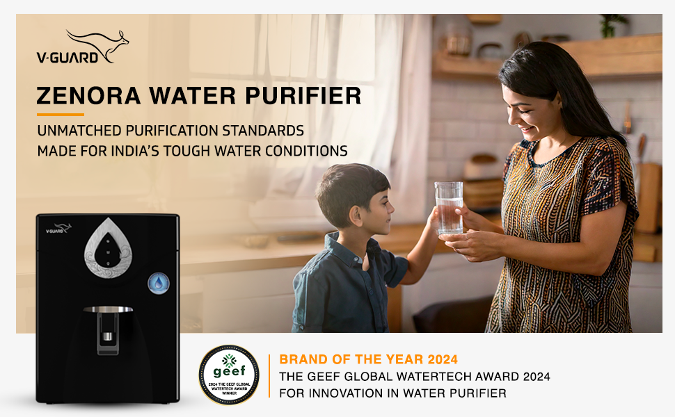 Experience pure, healthy drinking water with V-Guard Zenora Water Purifier, a range of advanced RO water purifiers thoughtfully designed to withstand India’s tough water conditions. Built with state-of-the-art filters and an advanced multi-stage purification process, Zenora ensures long-lasting performance with minimal maintenance. It meets the latest BIS standards and offers True Water Savings by recovering up to 40% water, reducing wastage, and promoting sustainability. Recognized as the...